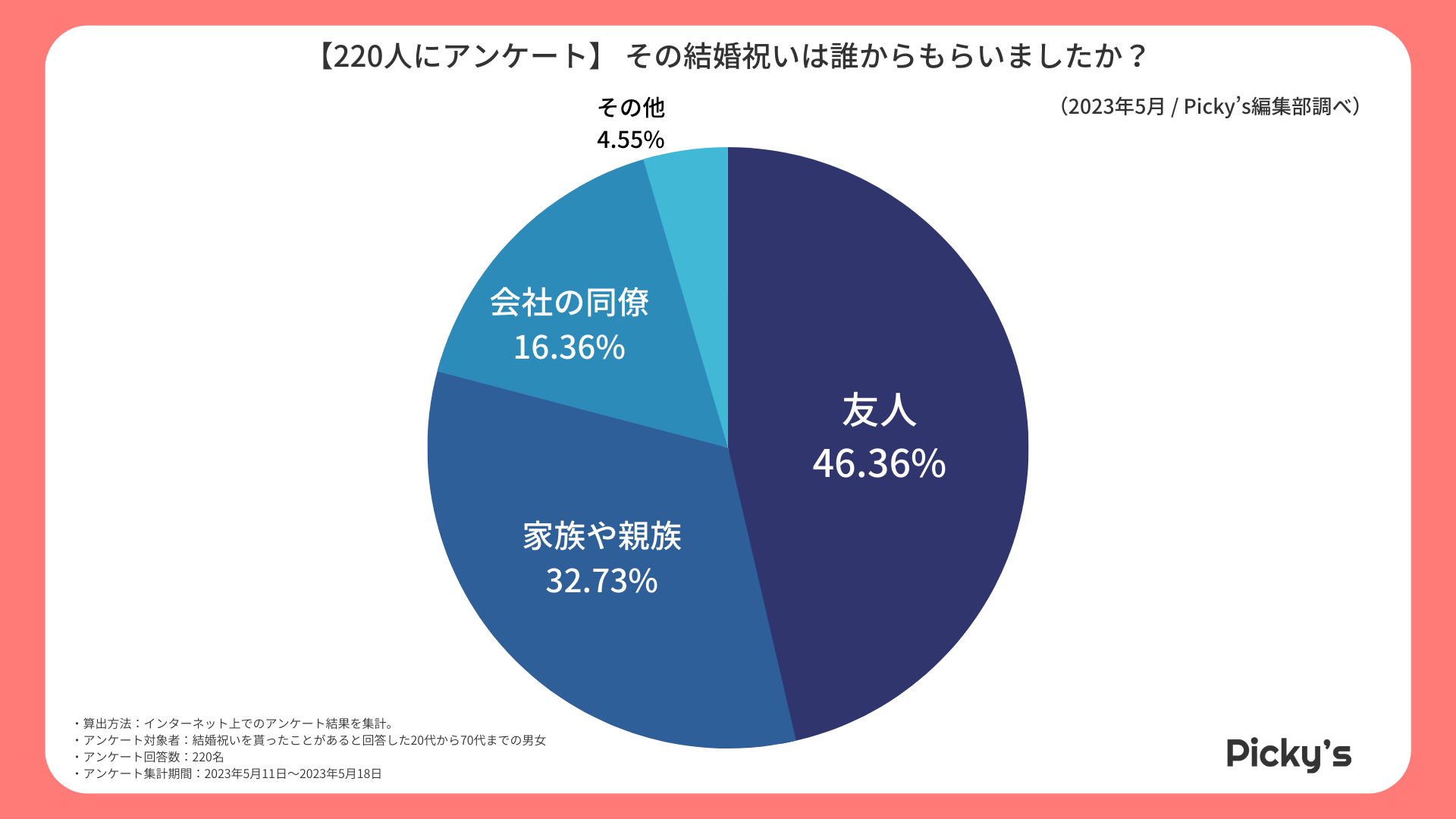 ほぼ半数の人が友人からの結婚祝いであったと回答されました。