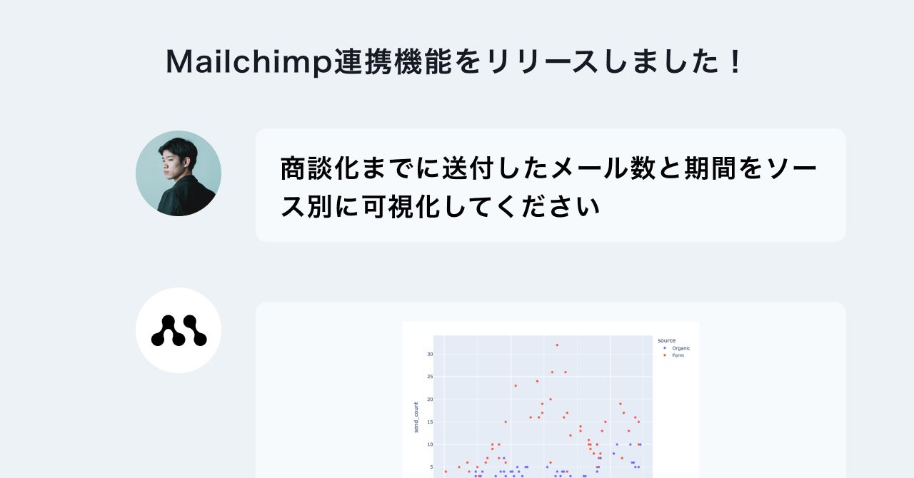 今回のアップデートにより、メール配信プラットフォームのMailchimpからのデータインポートに対応し、ファイルのエクスポートやインポートを経由せず、数クリックでのデータ連携が可能になりました。