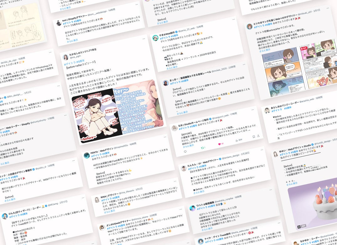 SNS上では「#デイトラ」「#5周年」といった投稿が100件以上に上り、オンラインで視聴した受講生も含め、多くの共感と感動が寄せられました。