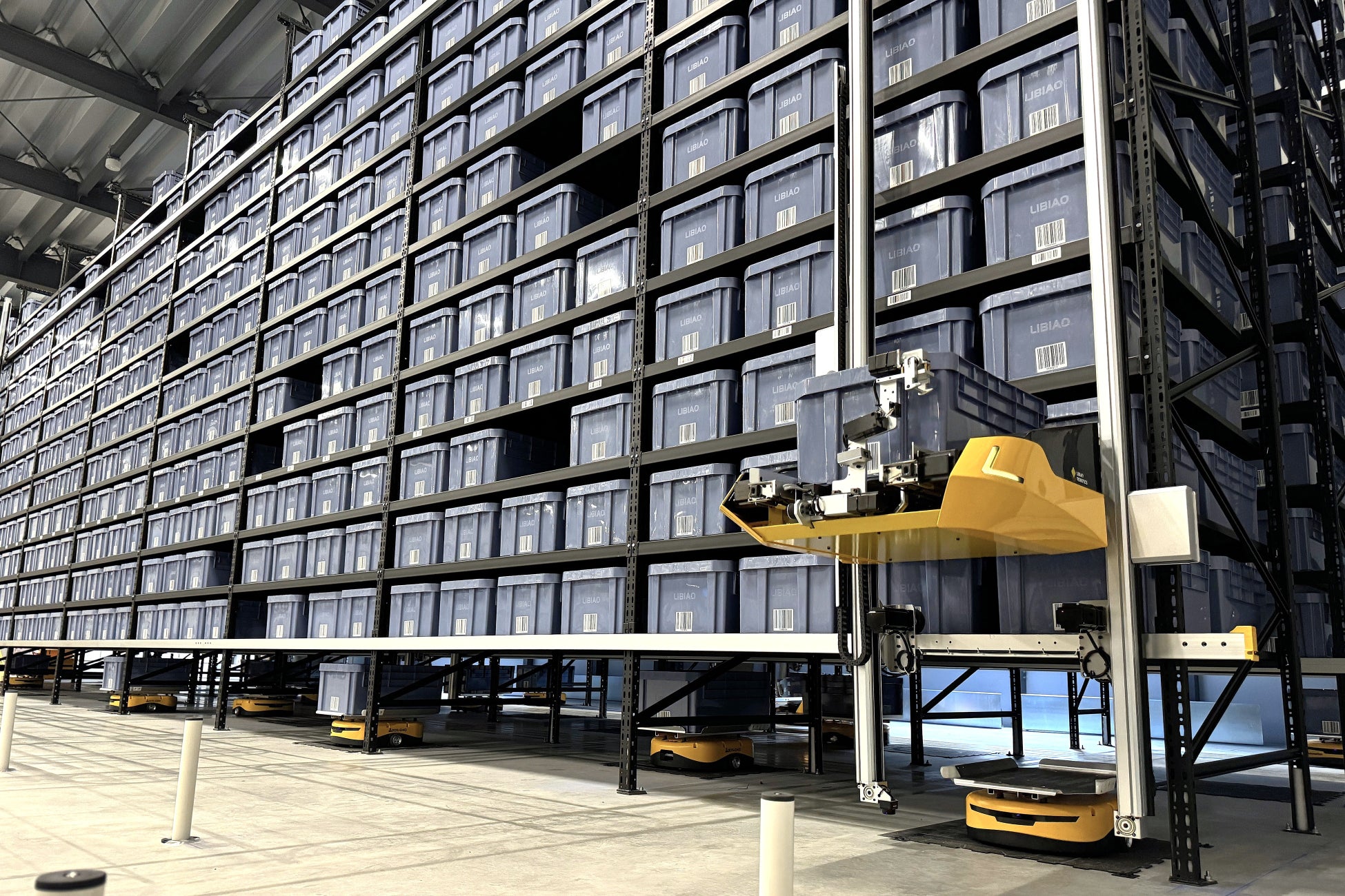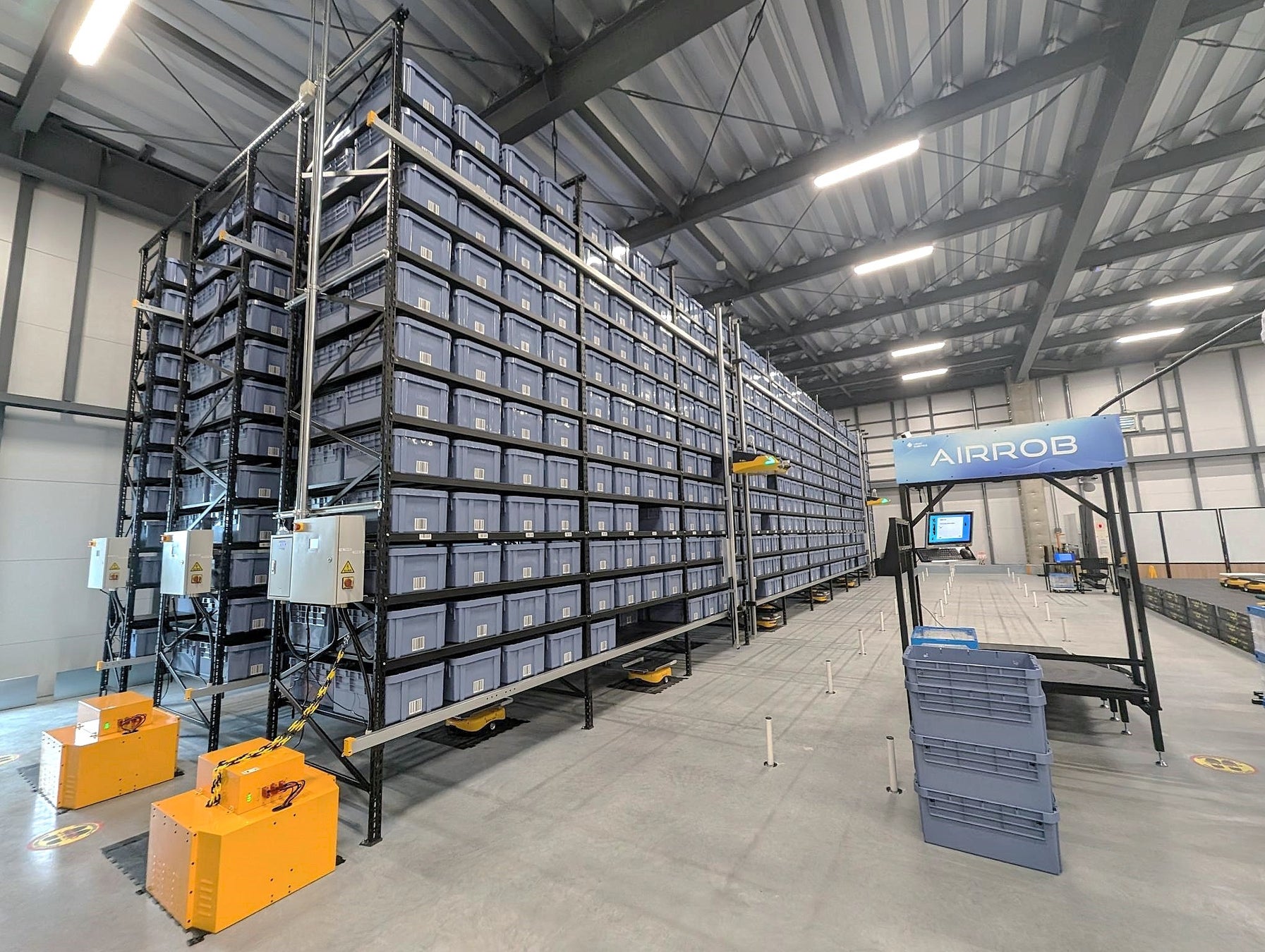 「AirRob」は、従来の自動倉庫と比較しレイアウトの自由度が高い保管ソリューションです。倉庫のフロアの形状や天井の高さに合わせた設計が可能で、防火区画を跨ぐことも可能です。ラック間のクリアランスやステーション設置スペースが小さく、倉庫スペースをフル活用することができます。600トート/時間/ステーションのピッキングを実現します。従来の自動倉庫導入ハードルを下げ、多くのお客様の物流現場の作業効率化を推進するソリューションです。