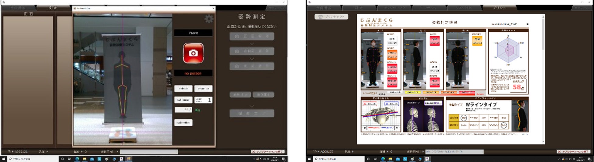 IBMirror(アイビーミラー)は鏡に設置されたカメラで、正面・横・背面を撮影し、身体の歪みや筋肉のストレス度など、姿勢データを「非接触」で測定します。