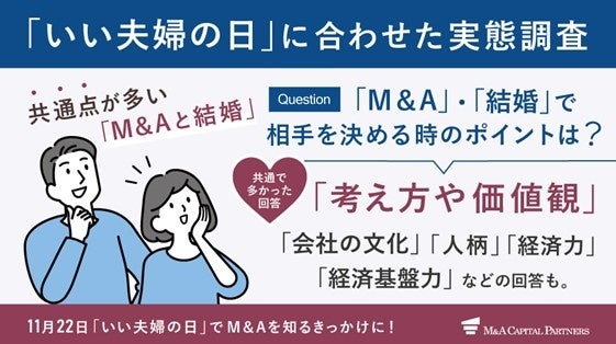 「いい夫婦の日」直前調査!M&Aは結婚に似ている?M&Aキャピタルパートナーズ、11月22日の夫婦の日に向けた意識調査を実施