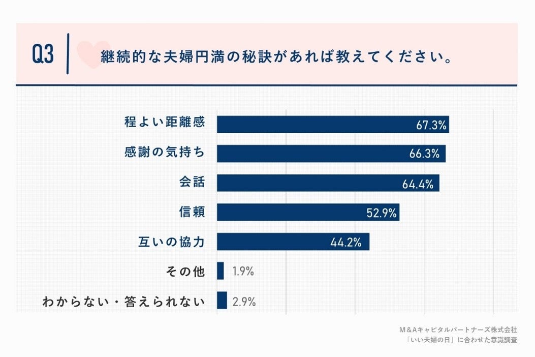 ‐継続的な夫婦円満の秘訣、約7割が「程よい距離感」や「感謝の気持ち」と回答‐