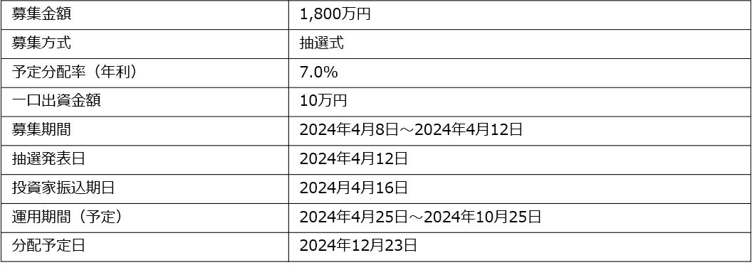◆ 「タスキ キャピタル重視型 第7号ファンド#1」募集要項