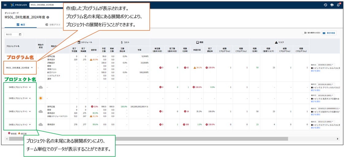 プロジェクトマネジメントソフトウェア「PROEVER」進化したプログラムマネジメントの機能を提供開始
