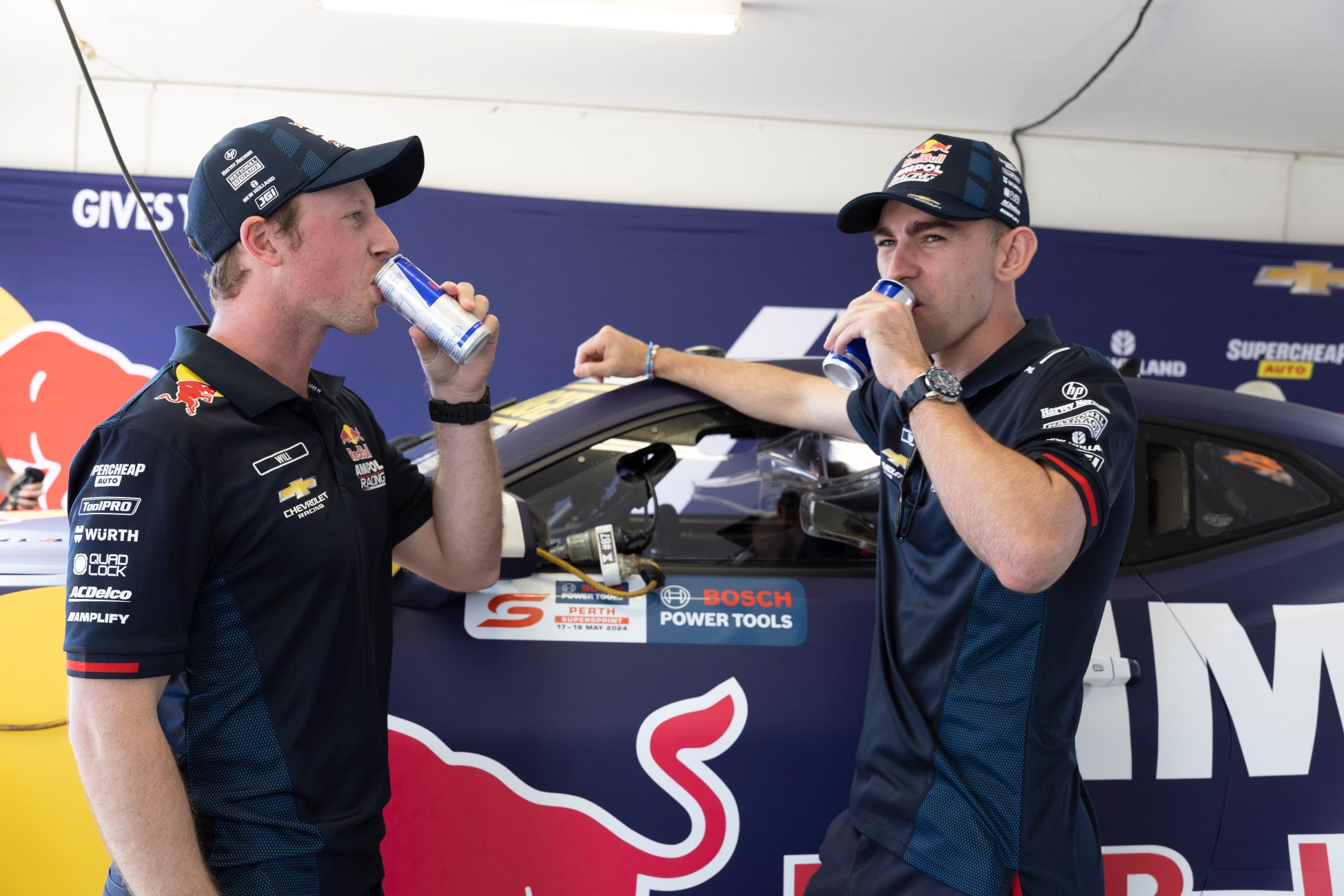 チームカーとなるシボレー・カマロと同じく、レッドブルカラーのレッド×ブルーが印象的に配された3モデルはどれもレーシーな雰囲気に包まれ、身につける者に軽快な印象を与えてくれるはずです。