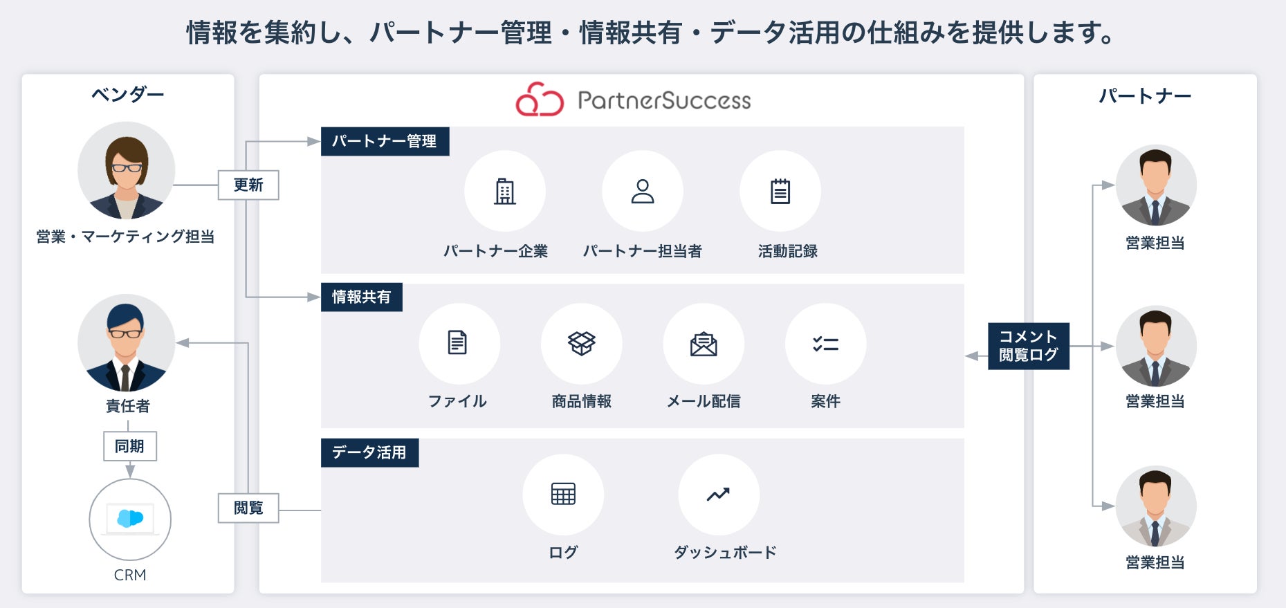 「PartnerSuccess」は、代理店管理・情報共有・データ活用の仕組みを構築し、売れる代理店を増やす、PRMクラウドサービスです。