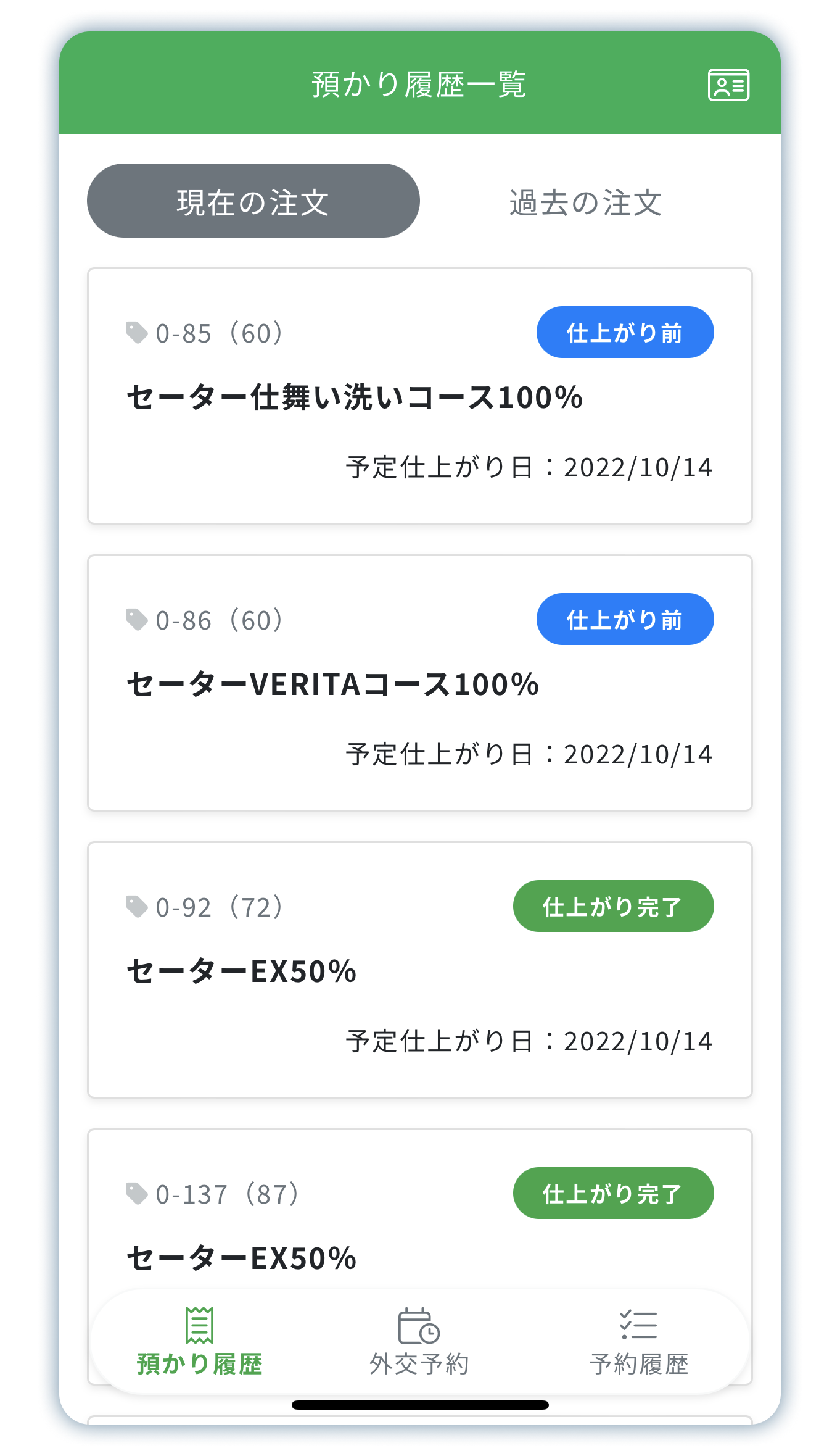 「仕上がり前・仕上がり完了」のステータスに加えて、予定仕上がり日も表示されるため、『受け取りに来たが、まだ仕上がっていなかった』という状況を避けることに繋がります。
