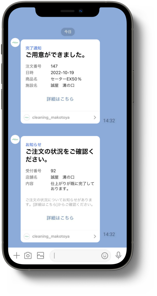 - 仕上がり通知をLINEメッセージで自動送信