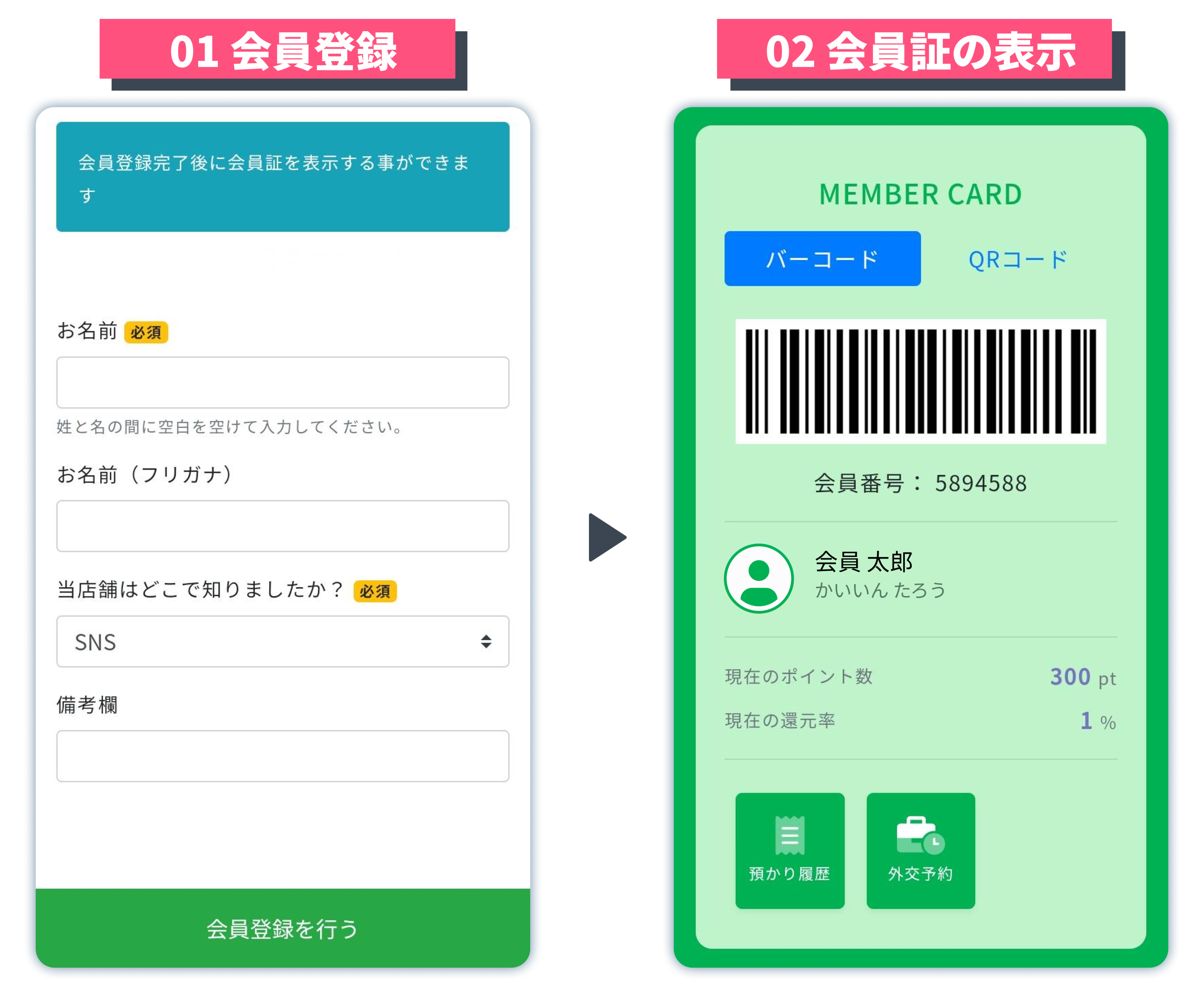 - LINEミニアプリ上での会員登録・会員証の表示