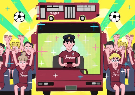 サッカー応援で地域課題を解決しバス!特別車両