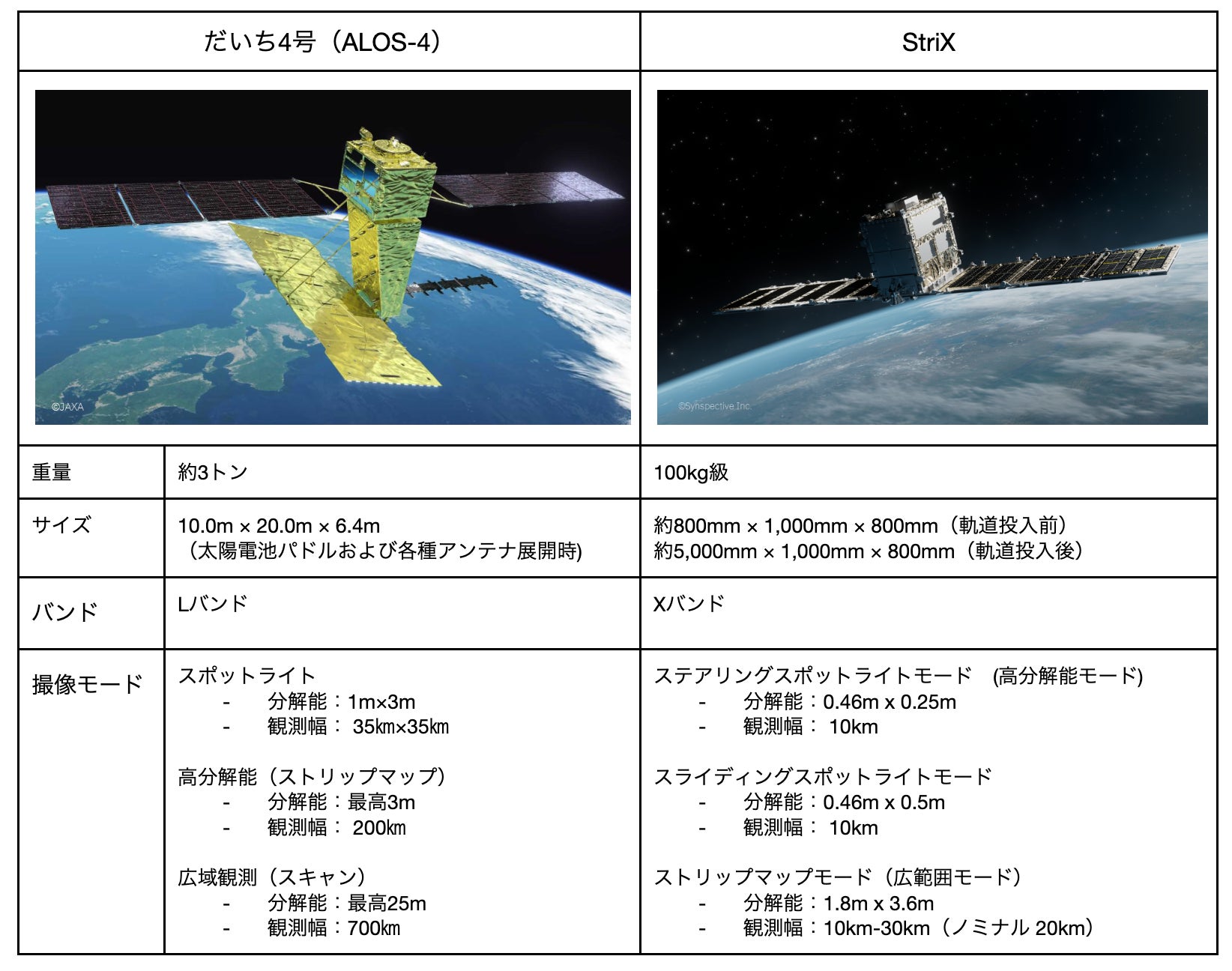 Synspectiveの小型SAR衛星「StriX(ストリクス)」と、ALOS-4は、どちらも合成開口レーダー技術を活用していますが、異なる特徴を有しています。