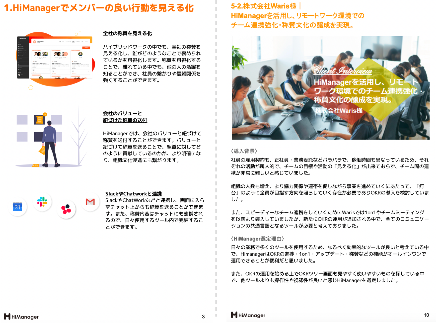 導入背景・選定理由・導入効果などともに、HiManager×称賛の事例をまとめた資料です。