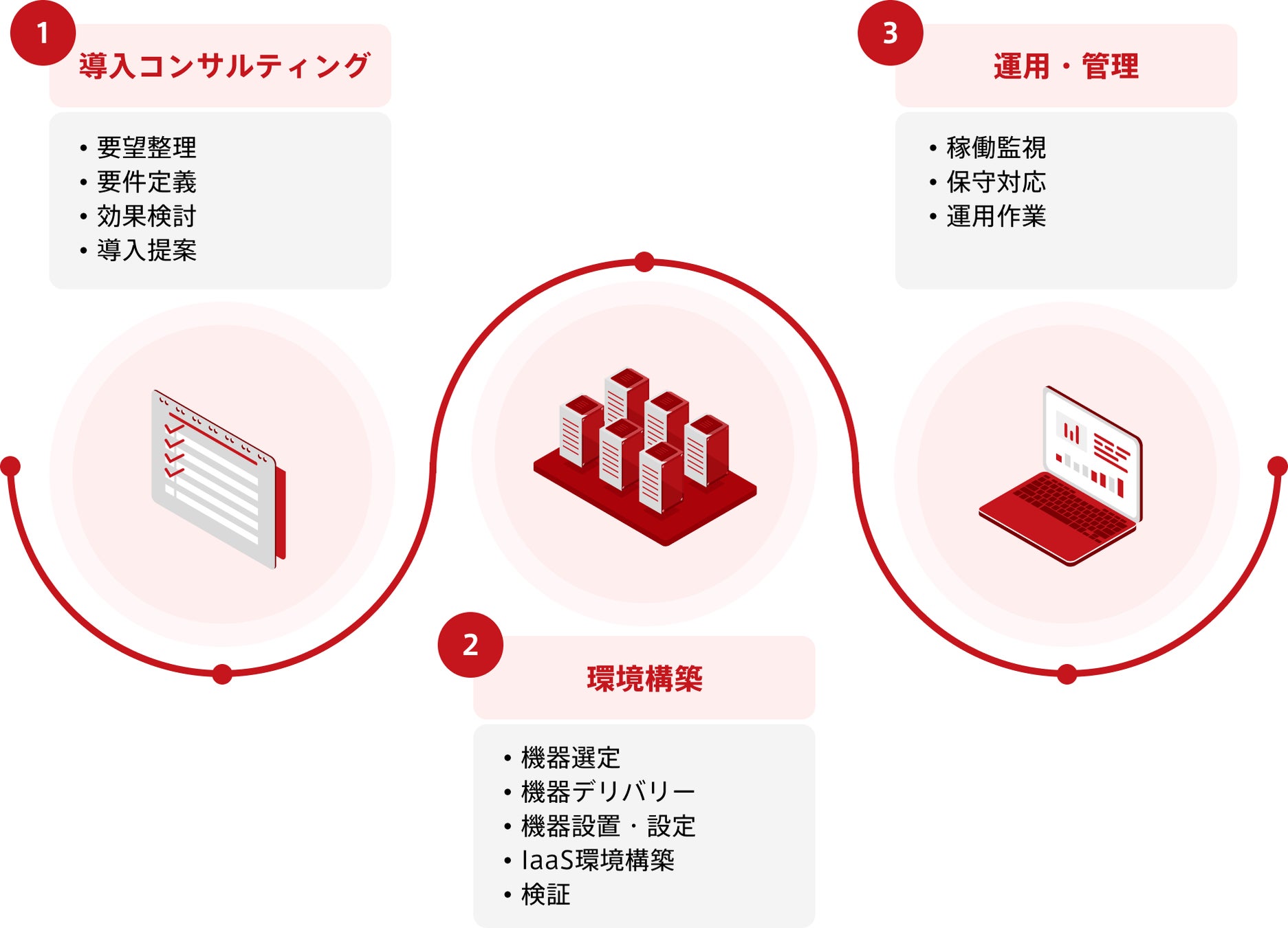 モルゲンロットは、AIデータセンターの構築・運用におけるコンサルティングから、お客様がAIデータセンターを実際に利用できる状態にするクラウドサービス化までのプラットフォーム構築を、一気通貫で対応可能です。これまで、グローバル企業、国内の大手企業や中小企業まで幅広いプロジェクトへ参画した知見を基に、初期段階の導入コンサルティングから柔軟な支援を提供します。