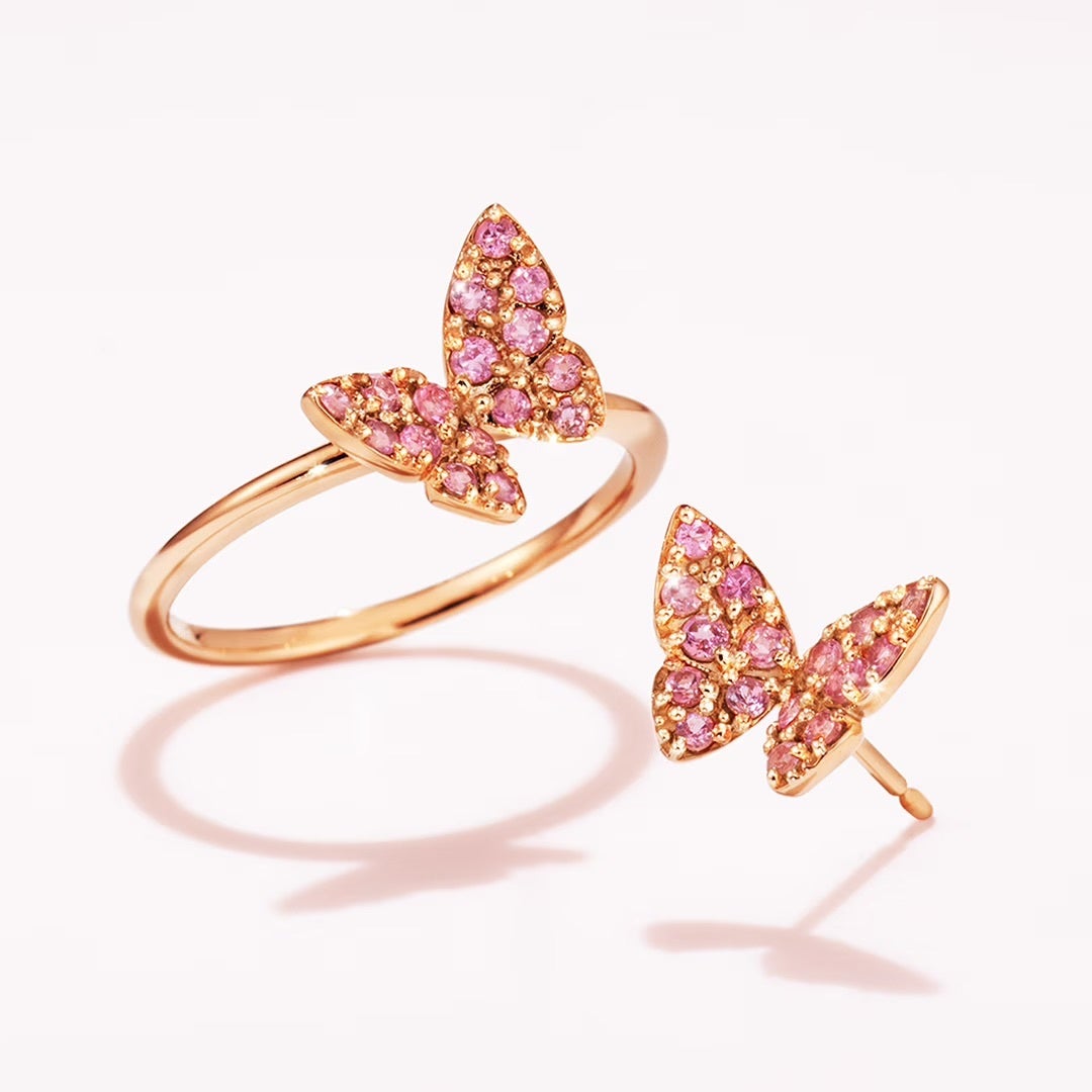 蝶が花から花へと軽やかに舞う姿をモチーフにした「パピヨン」コレクション。その優雅な佇まいはそのままに、春のシーズン限定カラーとして、柔和なピンクが美しいトルマリンを用いたモデルが登場します。