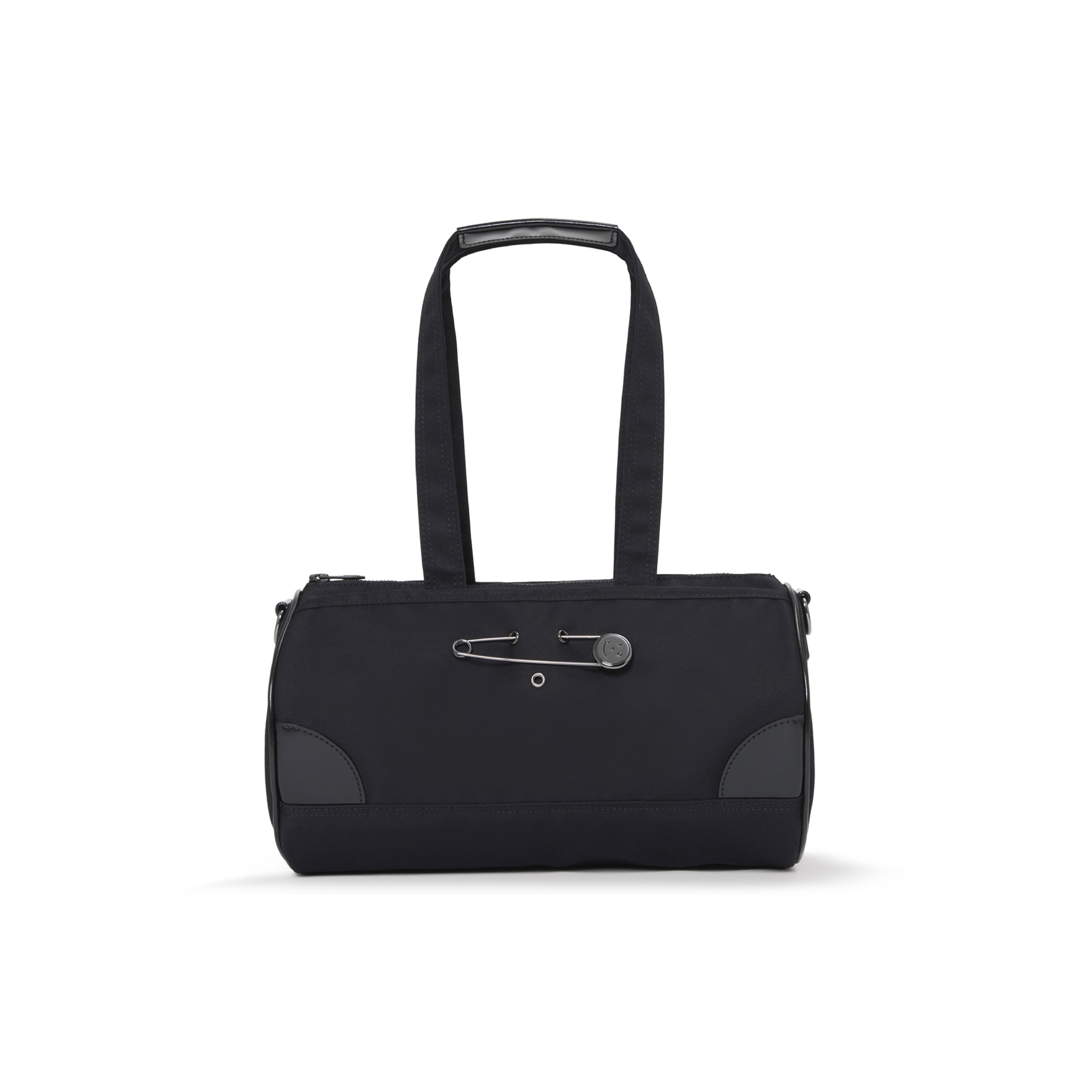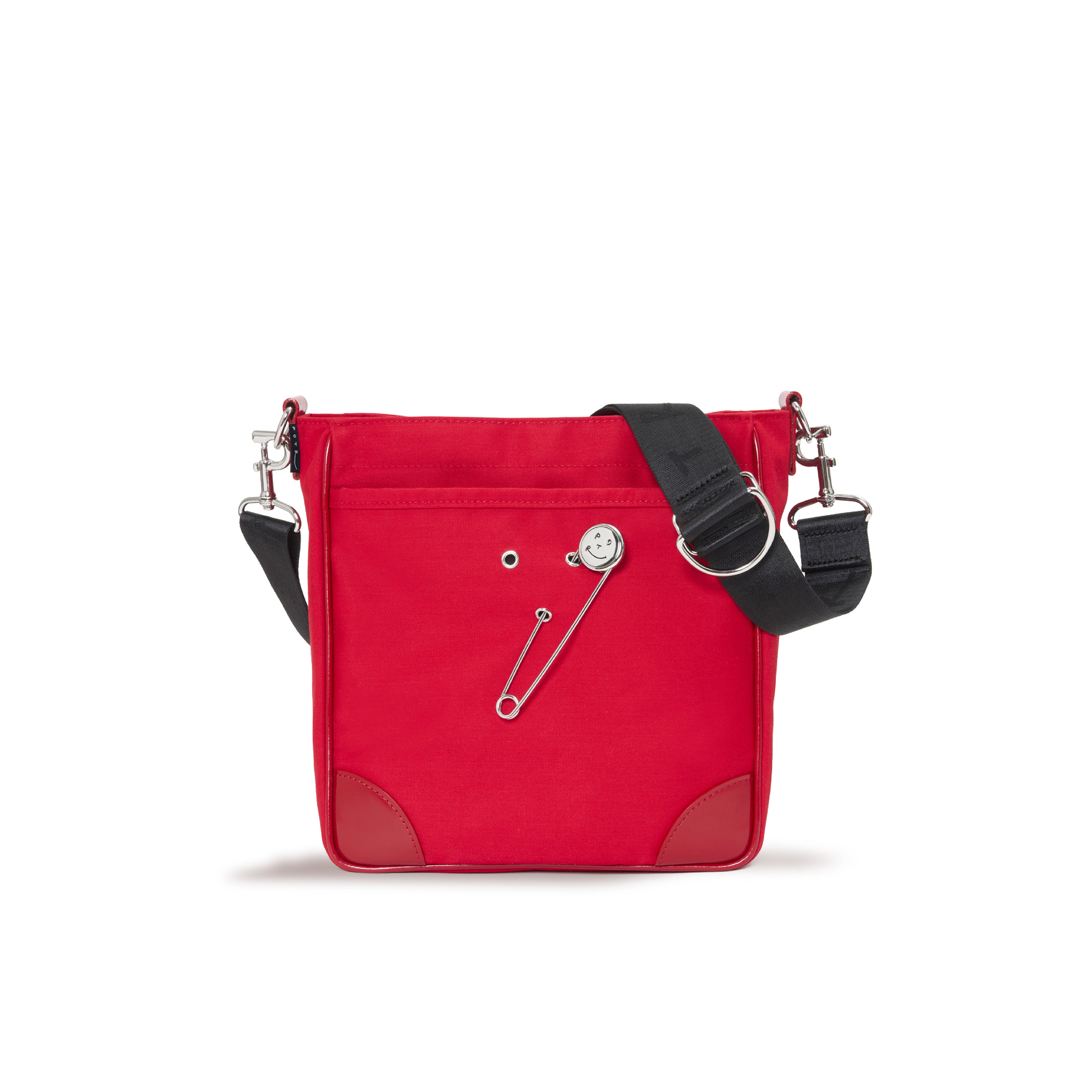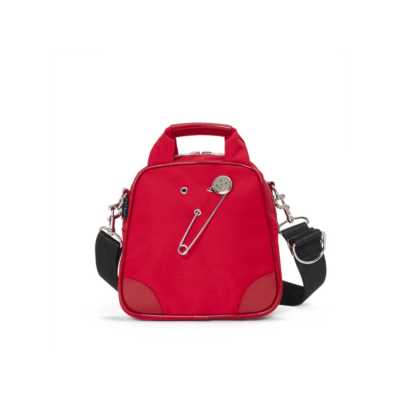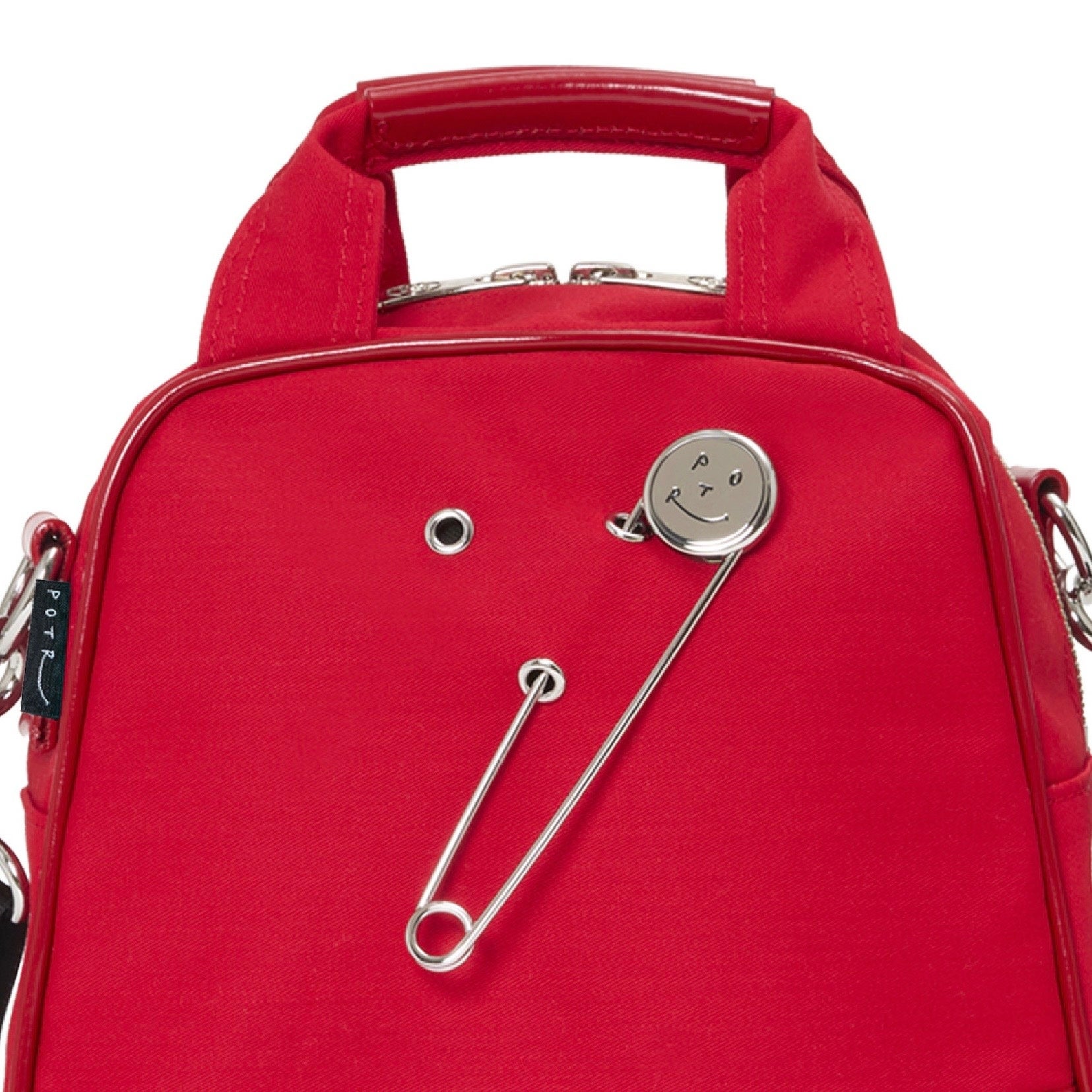 ラッキーモチーフとして付属するスマイルピンは、バッグ表面に施されたハトメに差し込むことで、気分に合わせて着脱・位置変更が可能です。