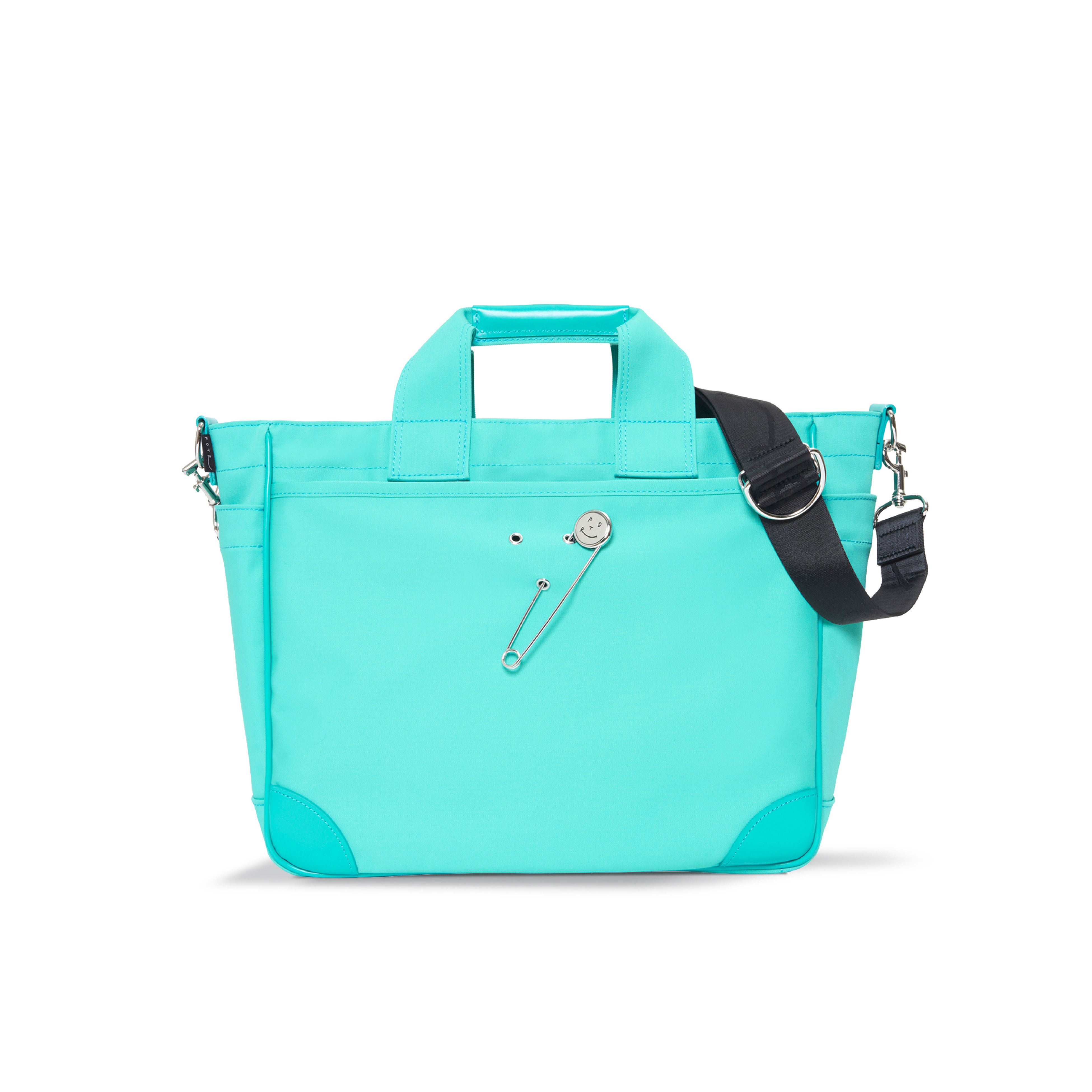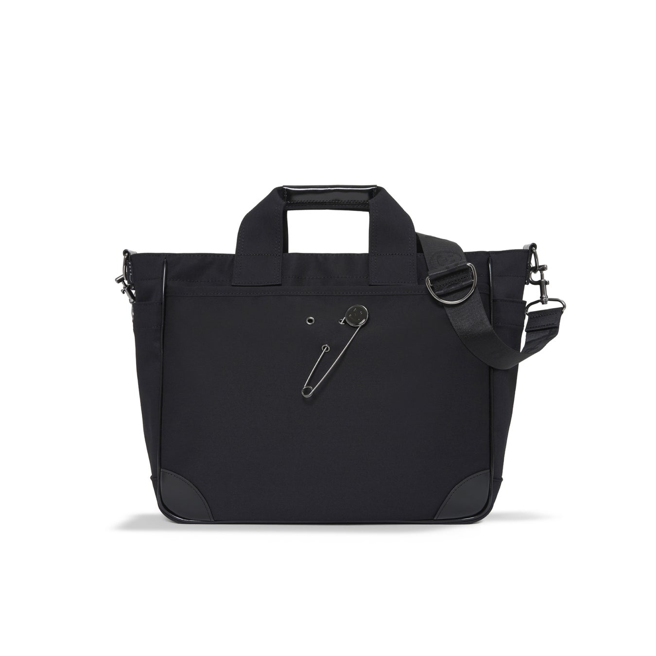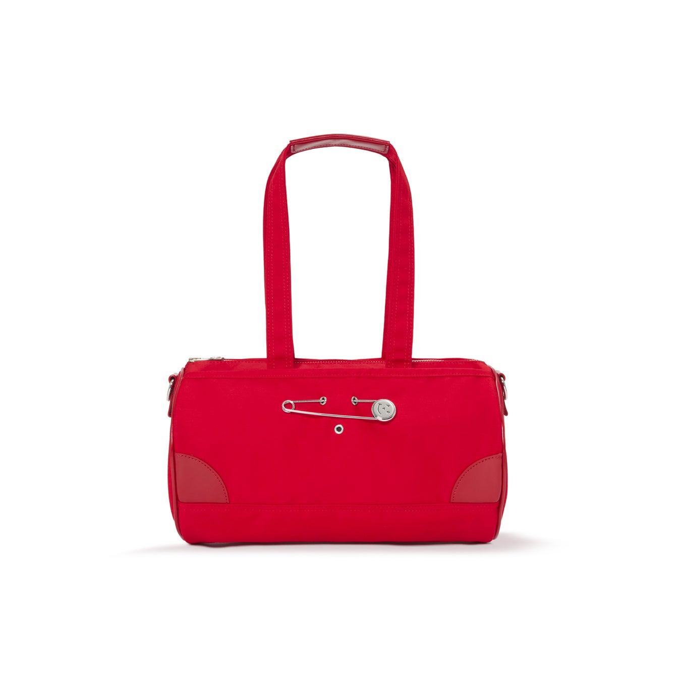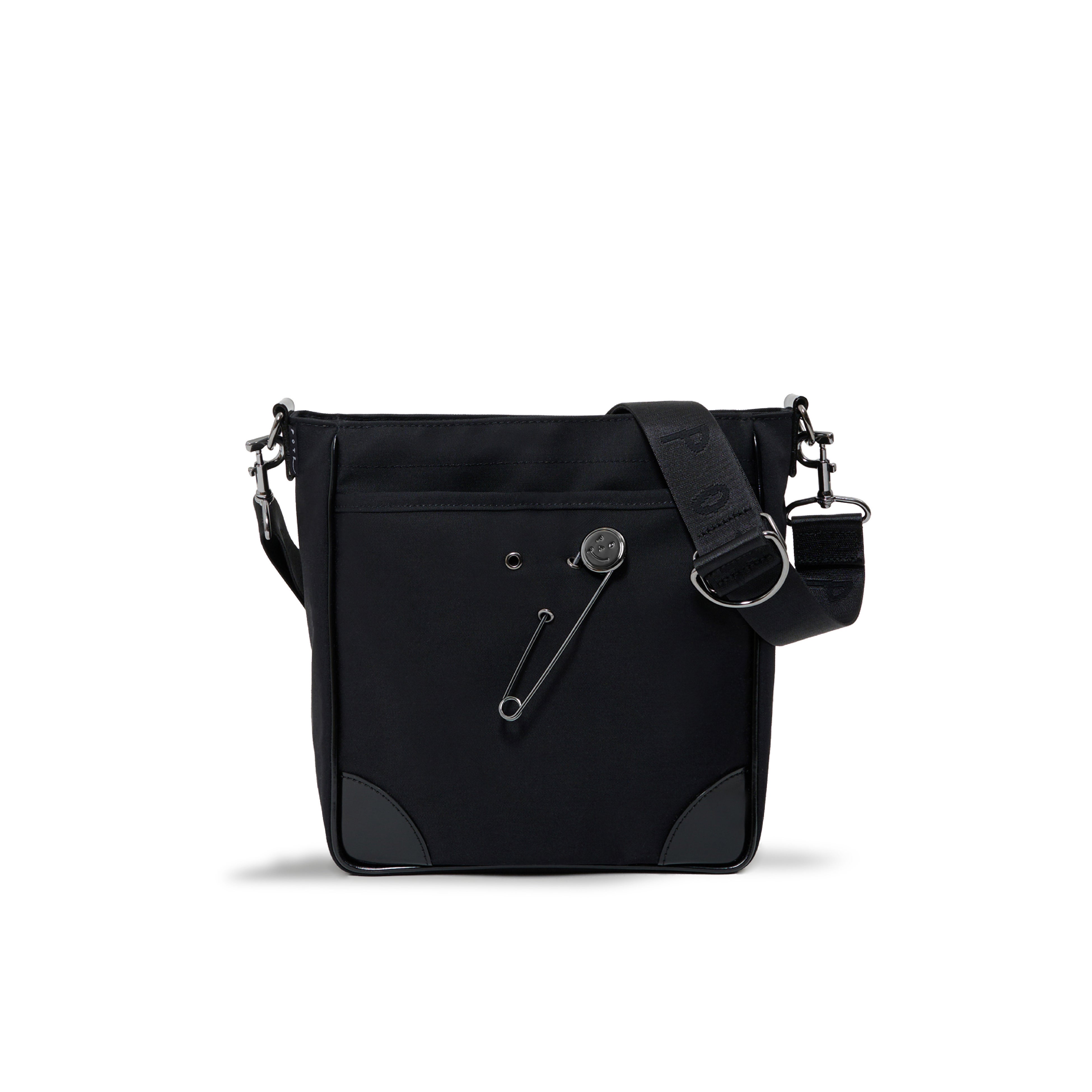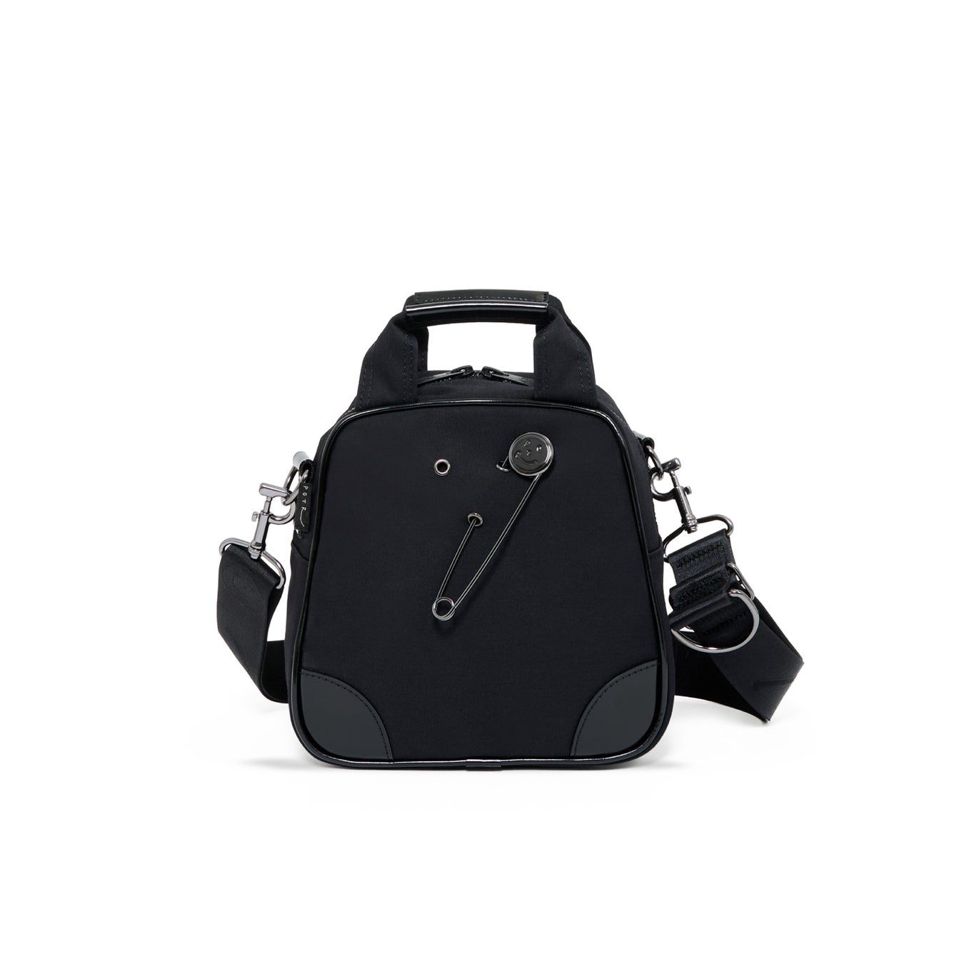 ラッキーモチーフとして付属するスマイルピンは、バッグ表面に施されたハトメに差し込むことで、気分に合わせて着脱・位置変更が可能です。