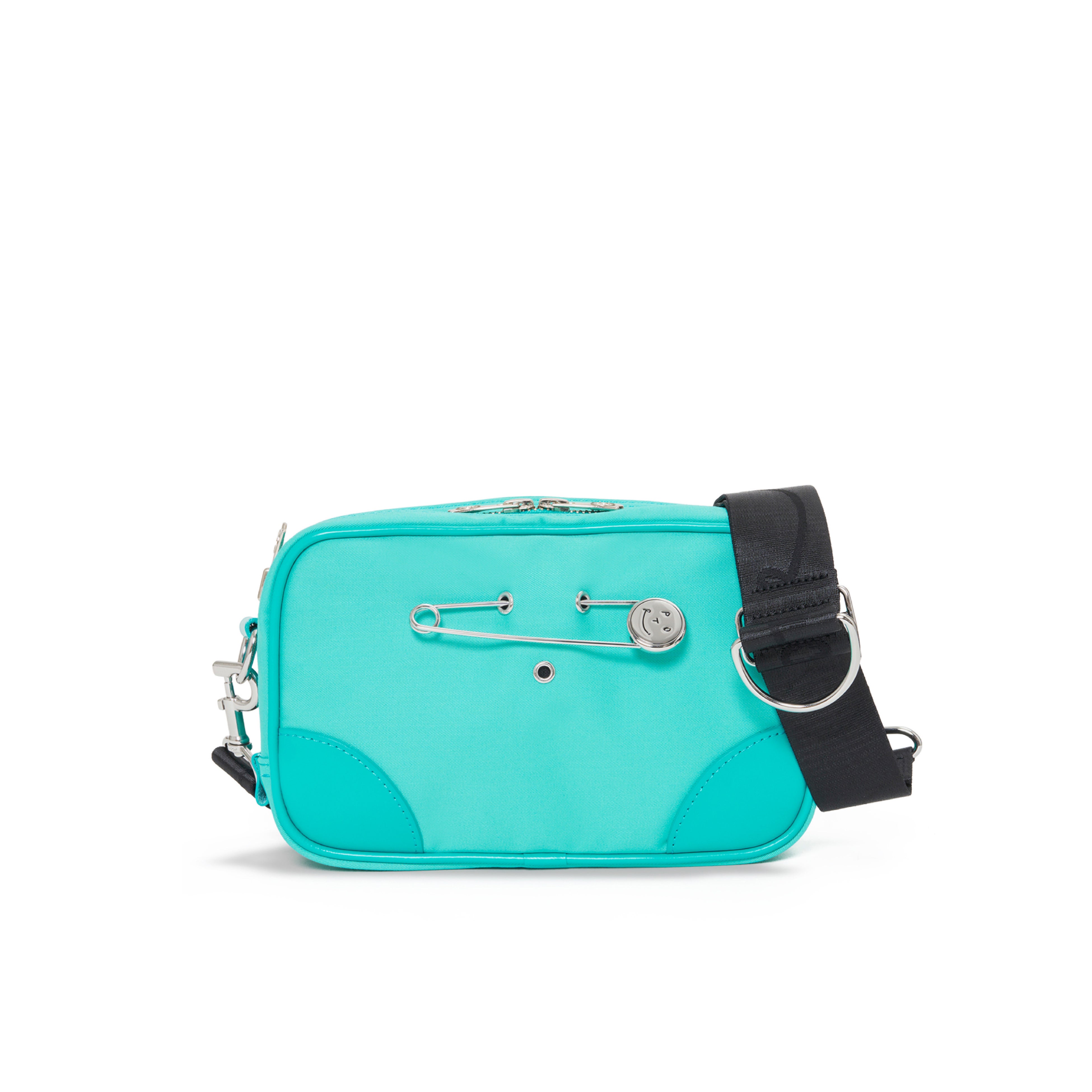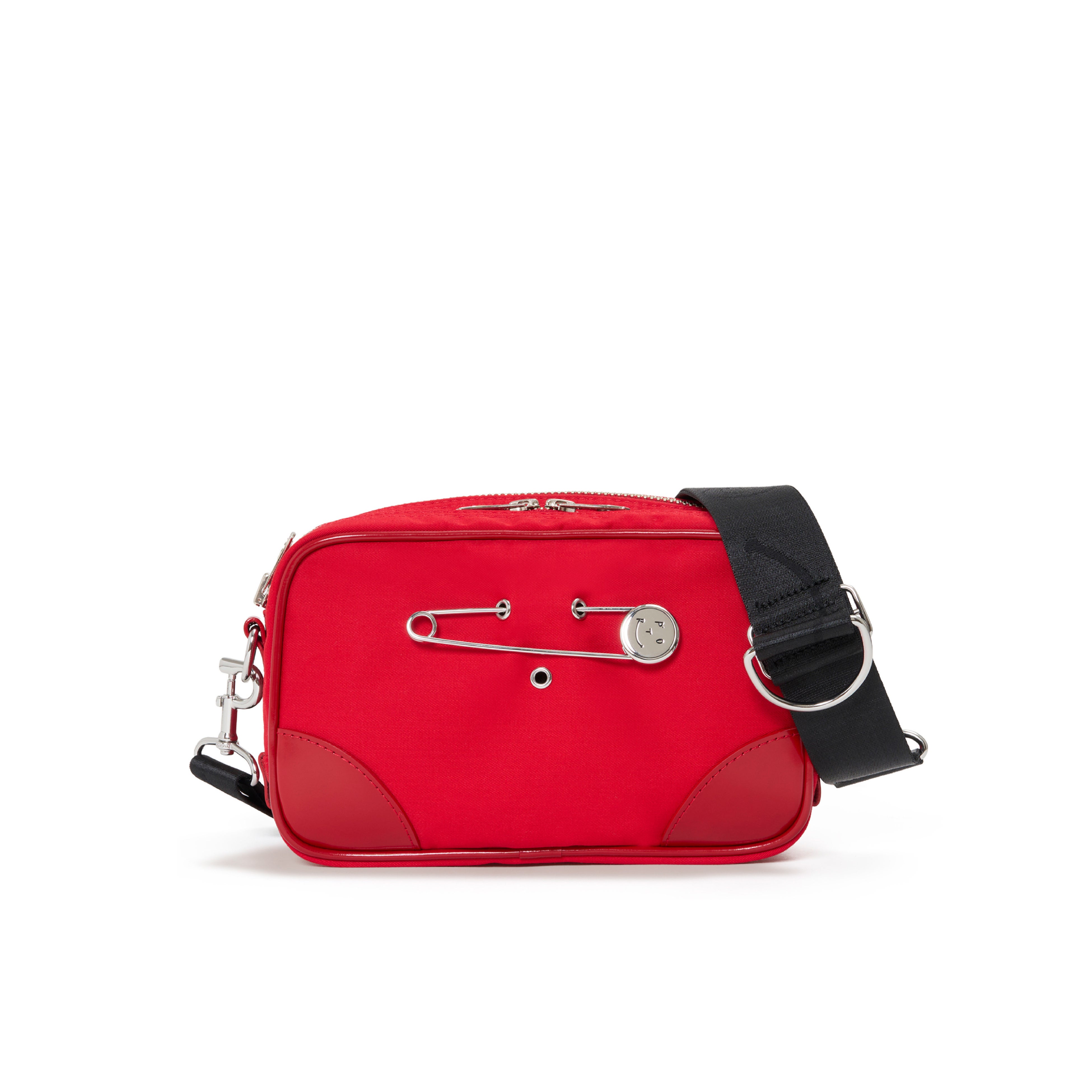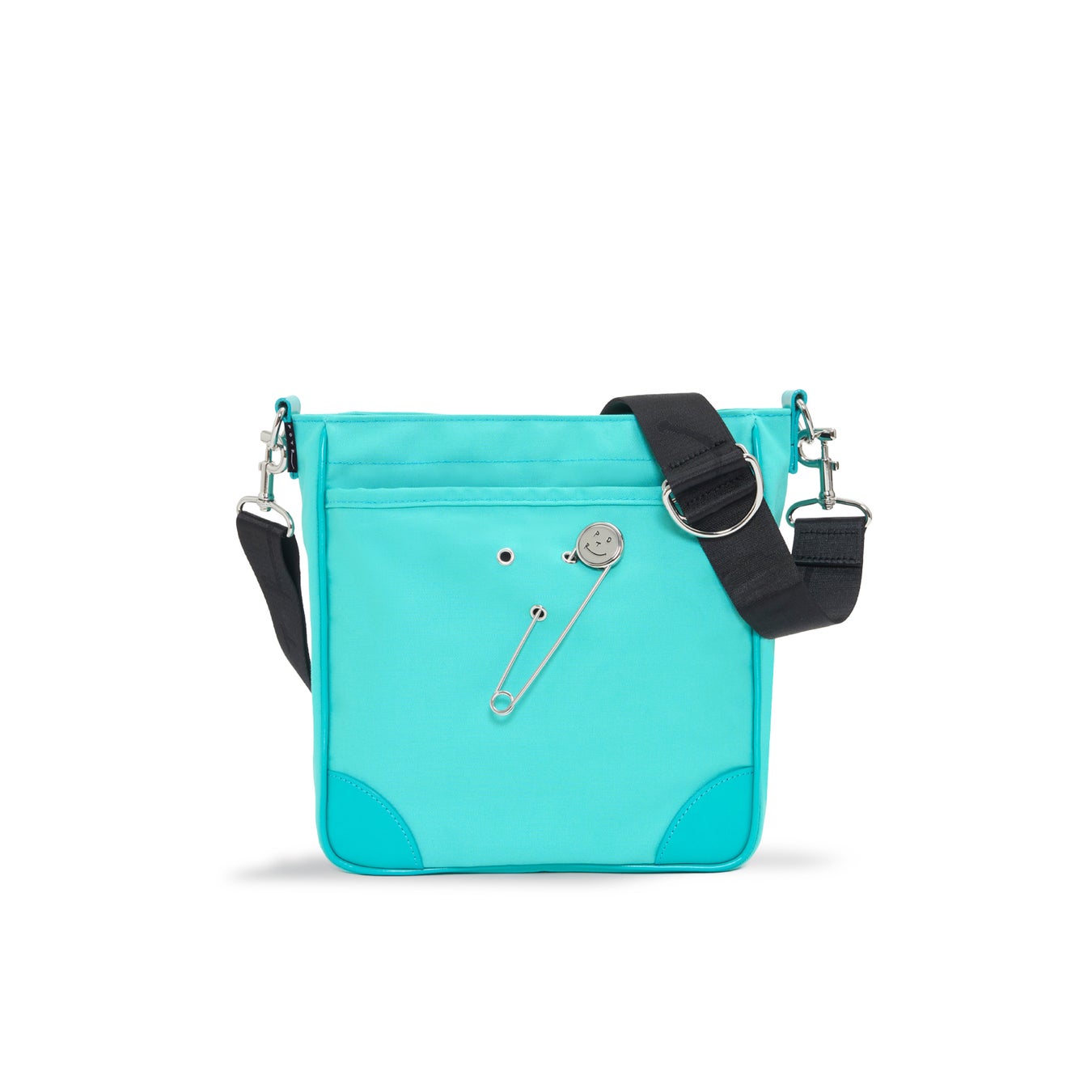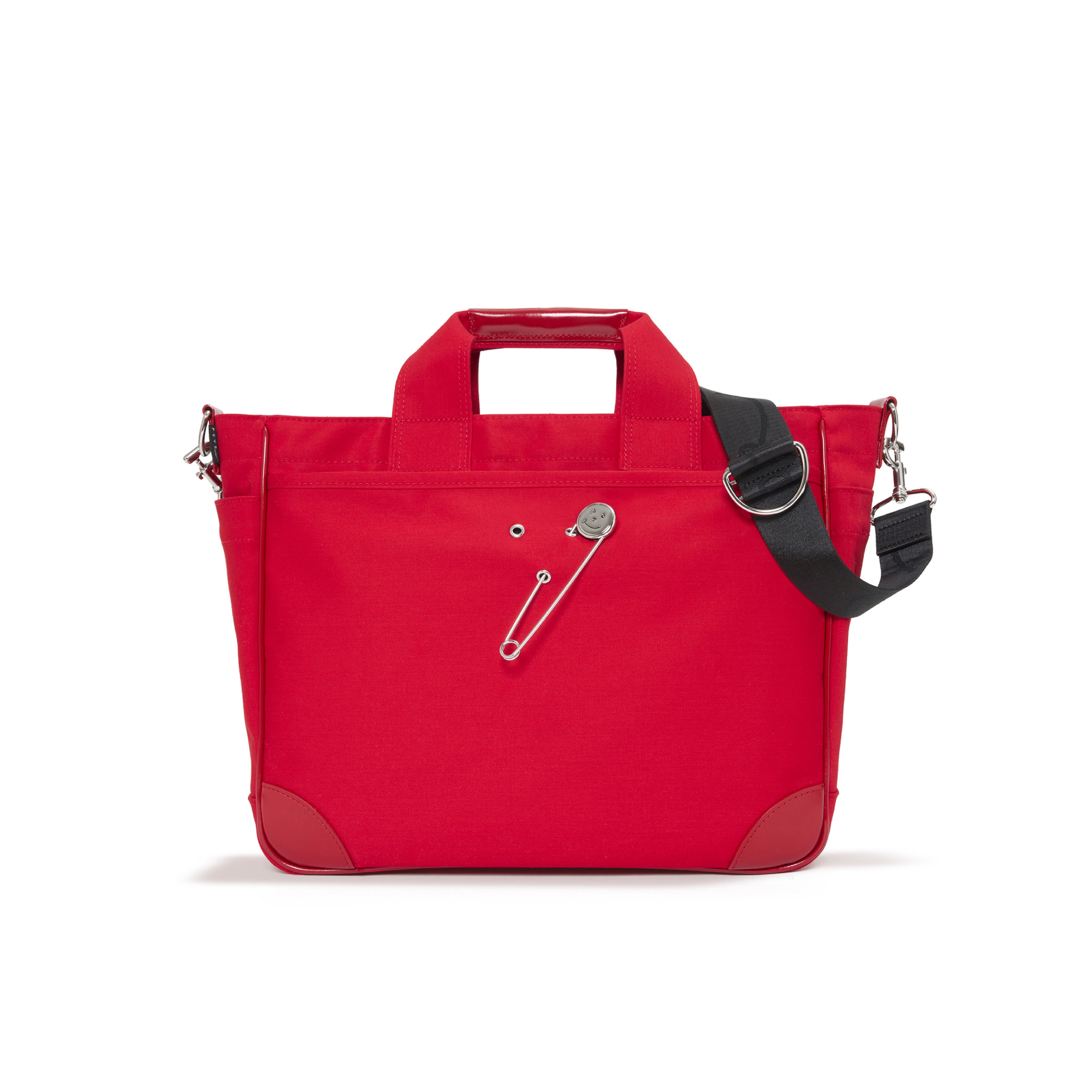 ラッキーモチーフとして付属するスマイルピンは、バッグ表面に施されたハトメに差し込むことで、気分に合わせて着脱・位置変更が可能です。