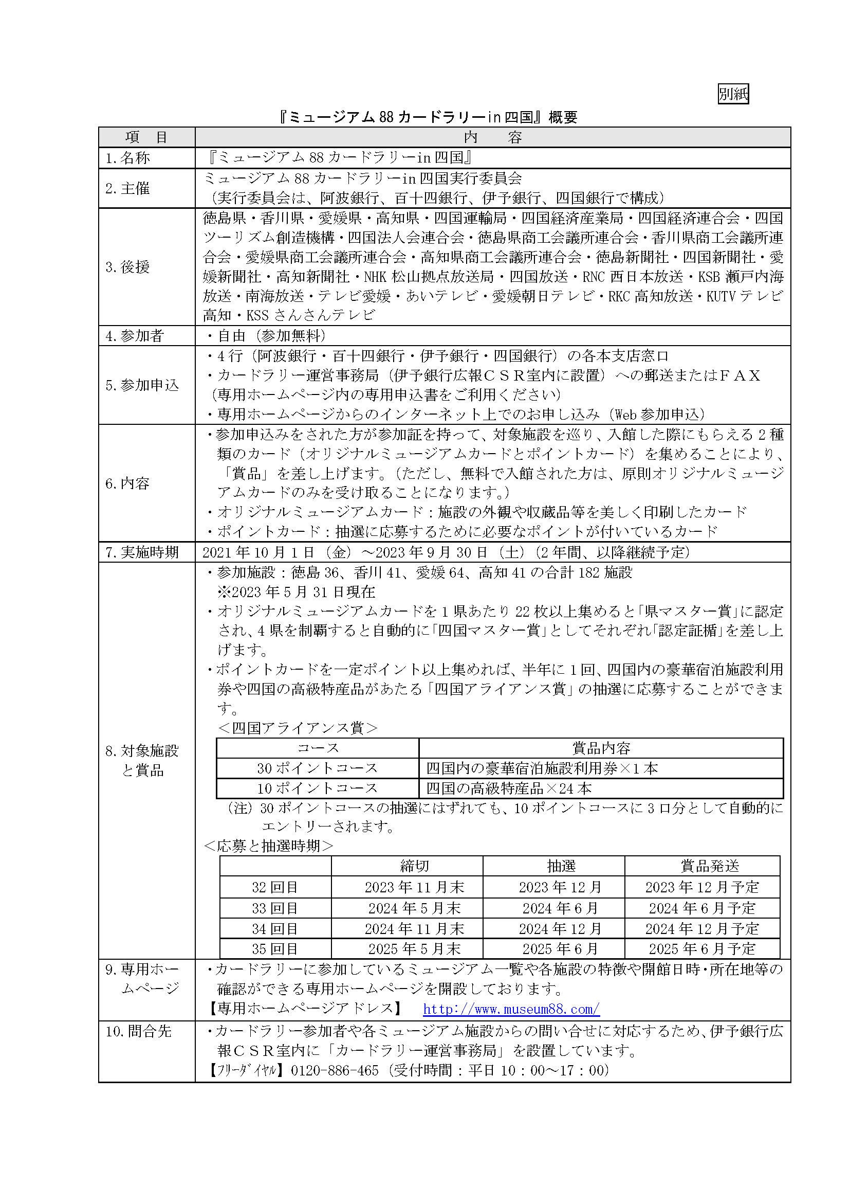 『ミュージアム88カードラリーin四国』 第31回四国アライアンス賞の抽選を実施しました!