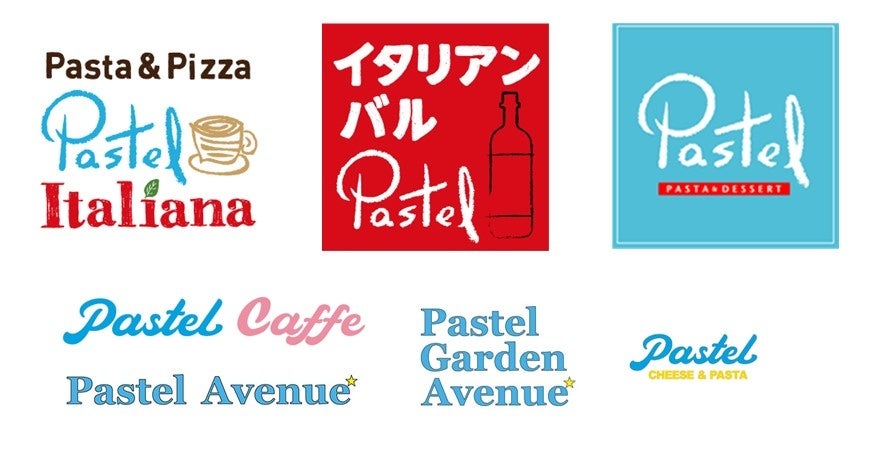 イタリアン : 「パステル」「パステルイタリアーナ」「イタリアンバルパステル」「ビバリー」「パステルアヴェニュー」「パステルガーデンアヴェニュー」「ベッラベーラ」「イタリア食堂パステル」