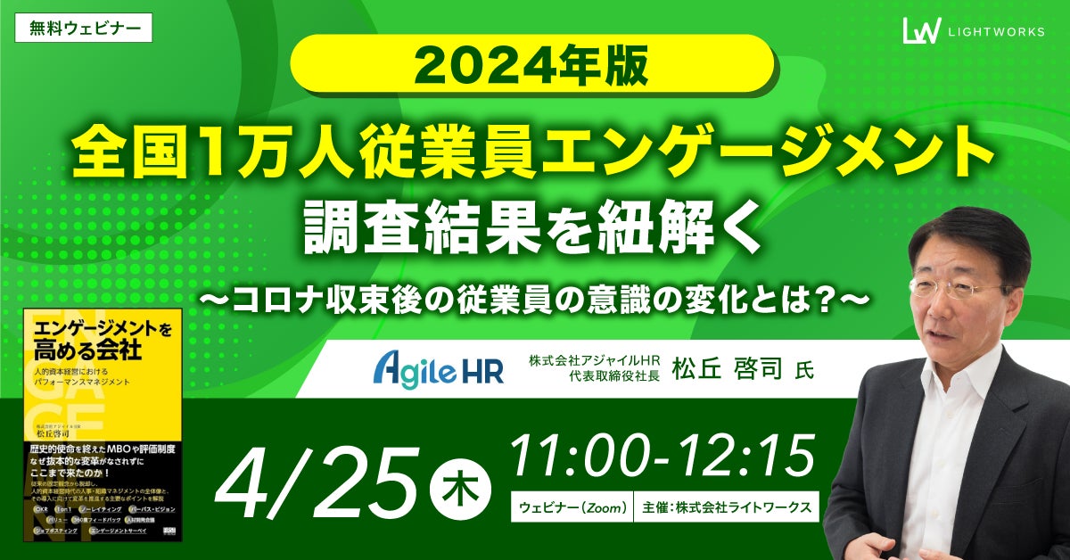 【4/25無料ウェビナー開催】全国1万人従業員エンゲージメント調査結果(2024年最新版)を紐解く