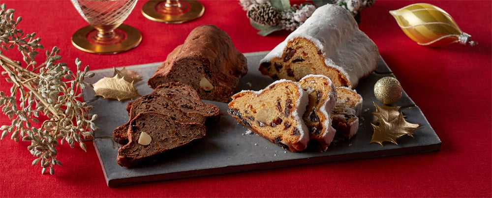 紀ノ国屋のシュトーレンは洋酒に漬けたドライフルーツ、オレンジピール、デーツなどが入り、日ごとに風味がなじみ、深みのある味を楽しむことができます。