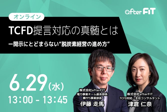 グリーンに特化した電力サービスの「しろくま電力(ぱわー)」を運営する株式会社afterFIT(東京都港区、代表取締役:谷本貫造)は、企業に迫られる脱炭素経営やTCFD(気候関連財務情報開示タスクフォース)提言への対応に関する無料オンラインセミナーを、2022年6月29日(水)に開催します。