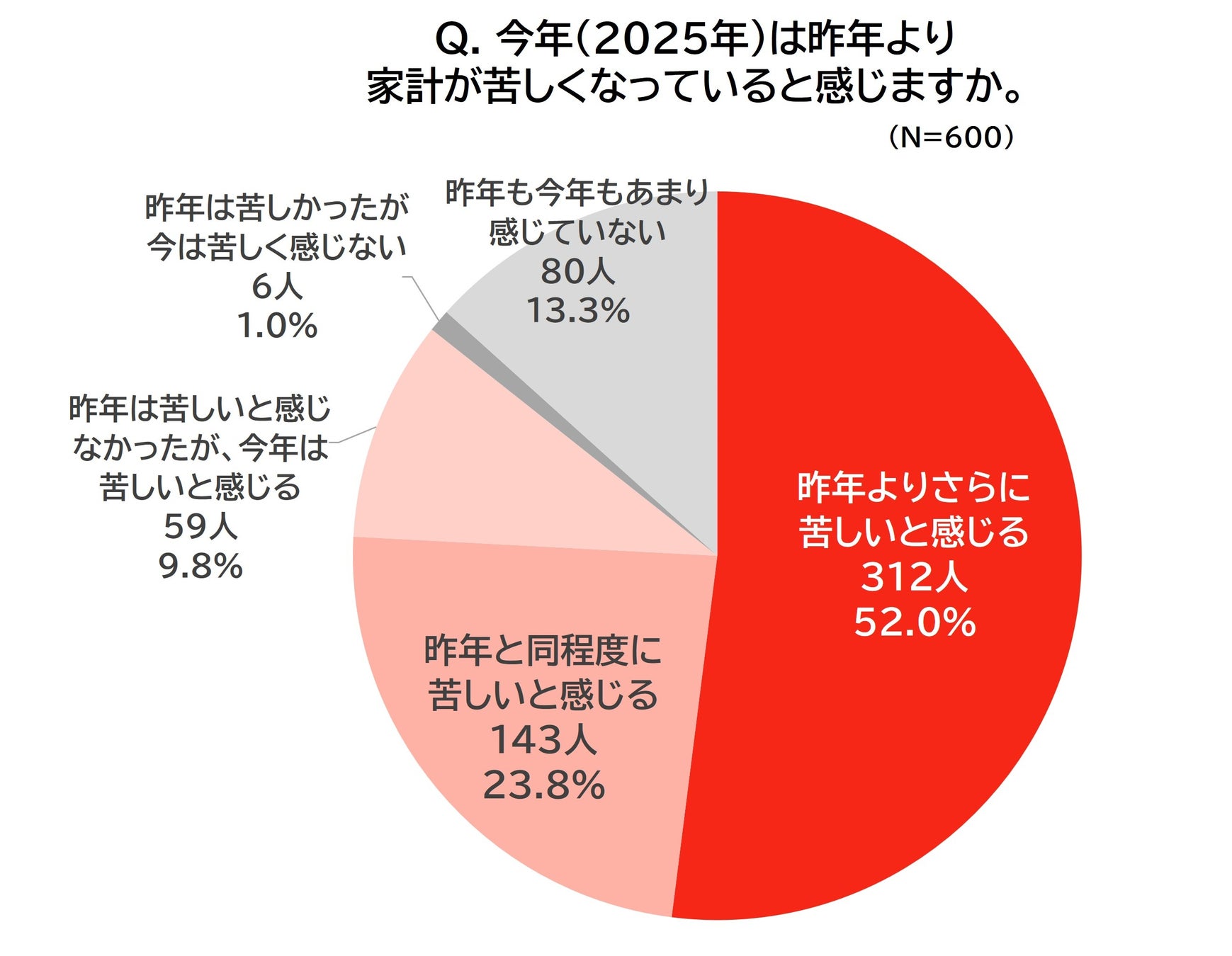 家計が「昨年以上に苦しい」は、半数以上も…。