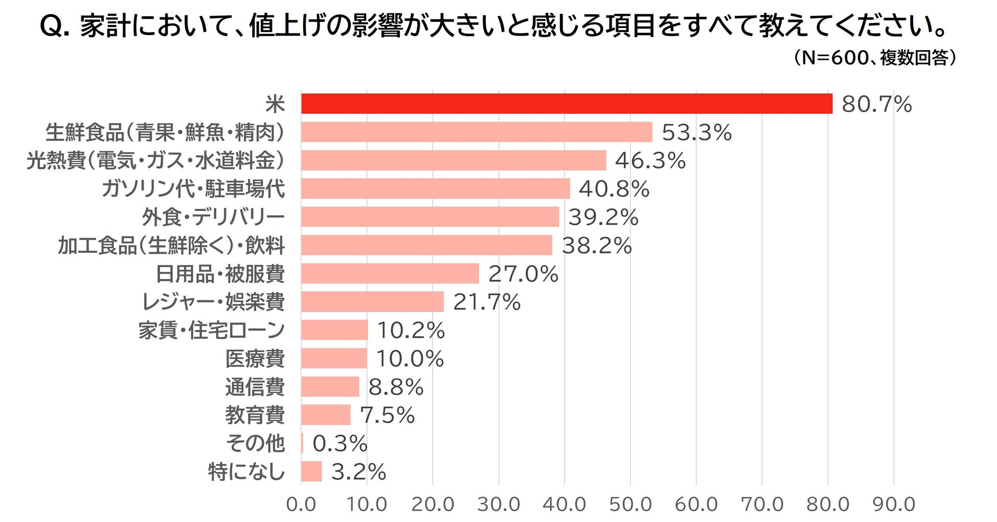 家計を直撃する値上げ項目、断トツ1位は「米」(80.7%)に