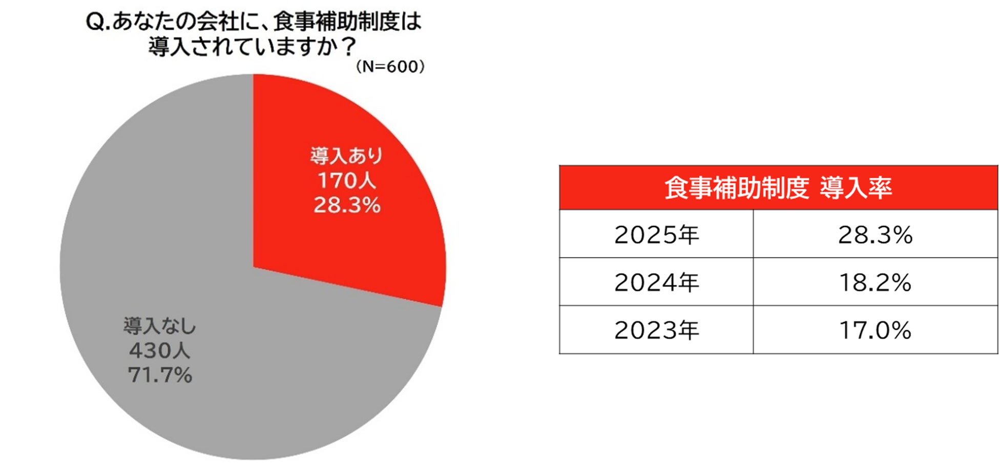 食事補助制度の導入率は、約3割(28.3%)と過去最高に