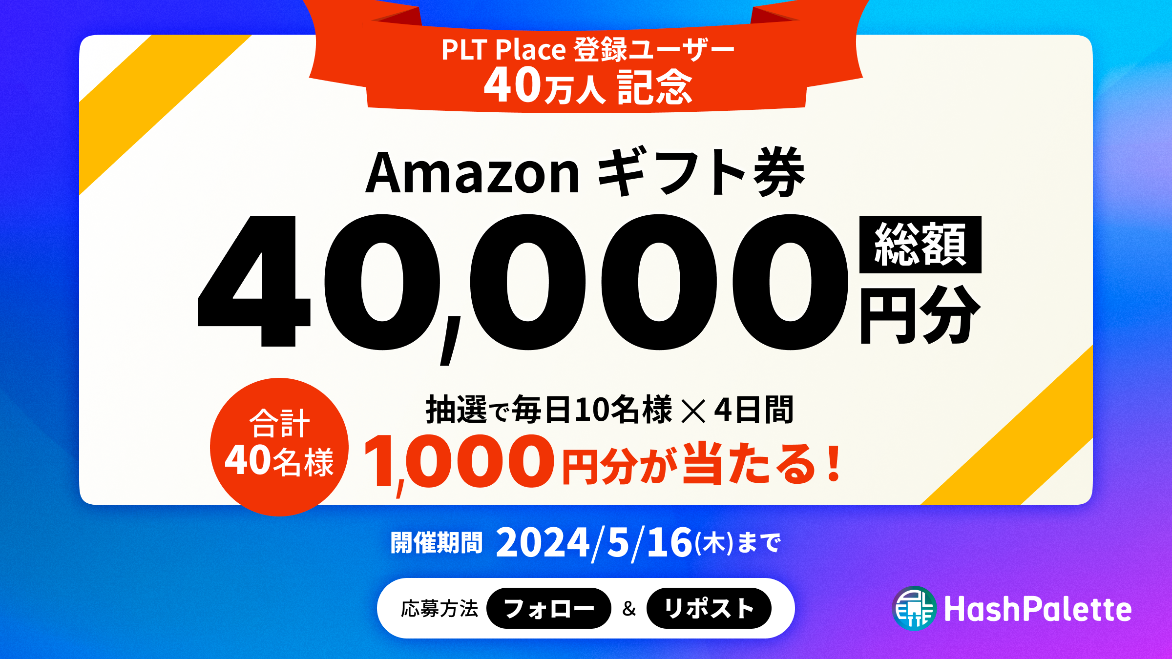PLT Placeの登録ユーザー40万人突破を記念し、皆様への感謝の気持ちを込めて、キャンペーンを開催中です。