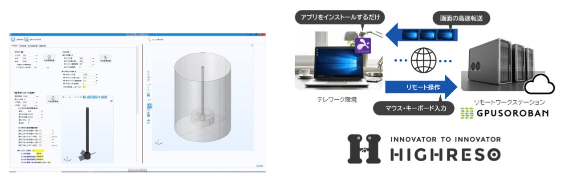 この課題を解決するため、今回、同アプリをクラウド環境でも活用できるよう、ハイレゾが提供するクラウドプラットフォーム「GPUSOROBANリモートワークステーション」と連携しました。ローカルPCに専用アプリをインストールするだけで、テレワーク環境からすぐに利用を開始でき、自宅や工場などの現場でも、オンプレミス環境と同じようにスムーズな操作が可能になります。