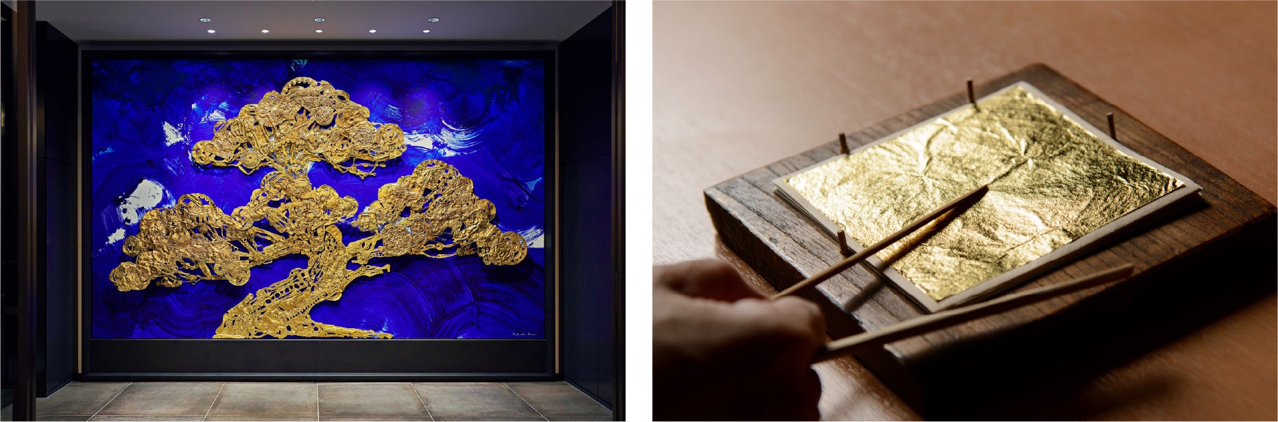 宿泊プランの特典のひとつとして、ホテルオリジナルリーフレットを片手に金箔アートを巡る特別な体験も。ご滞在中はぜひ、館内に点在するゴールドにちなんだアートワークを見つけてみてください。