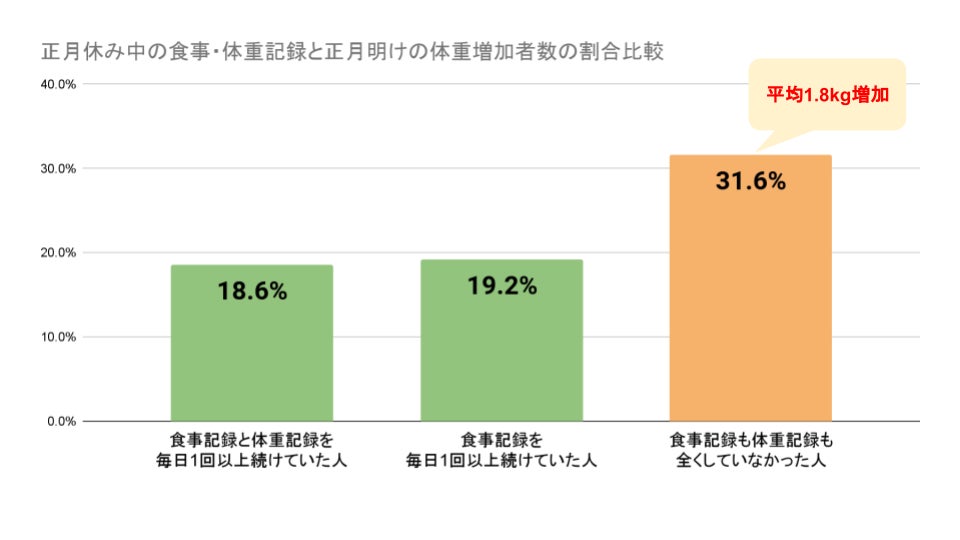 お正月も食事・体重記録を継続する人は8割以上が「正月太り」なし!記録をしない人は3割強が平均1.8kg増加