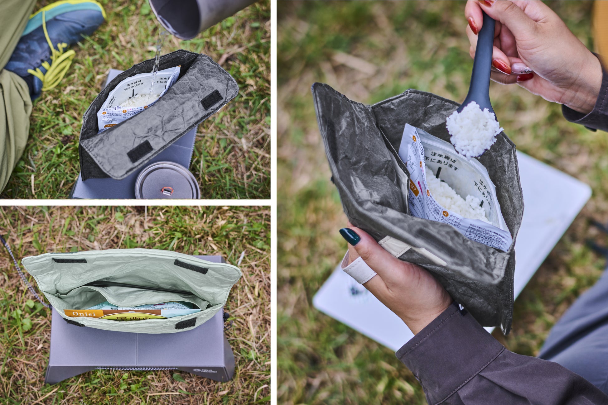 アルファ化米2食分を入れることができるサイズ、複数回食事をとるシーンにも対応。