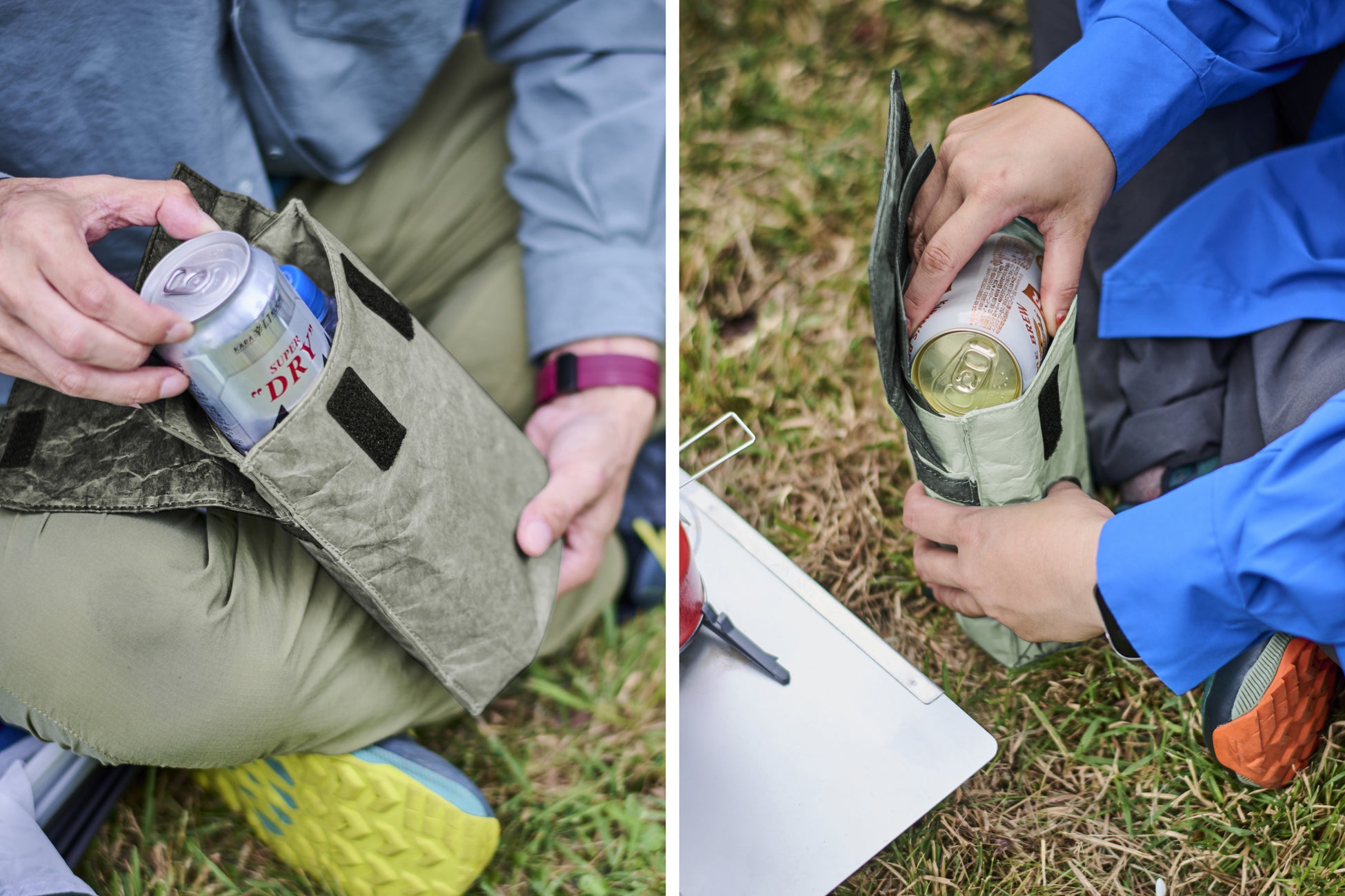 麓から冷たい飲みものを持っていくのではなく、宿泊地に近い店舗で購入したものを乾杯するまで冷やしておく。そのため2~3時間保冷できる断熱材の量に調整し、持ち歩くことをためらわない軽さと、バックパックに入れてもかさばらない厚さを実現いたしました。