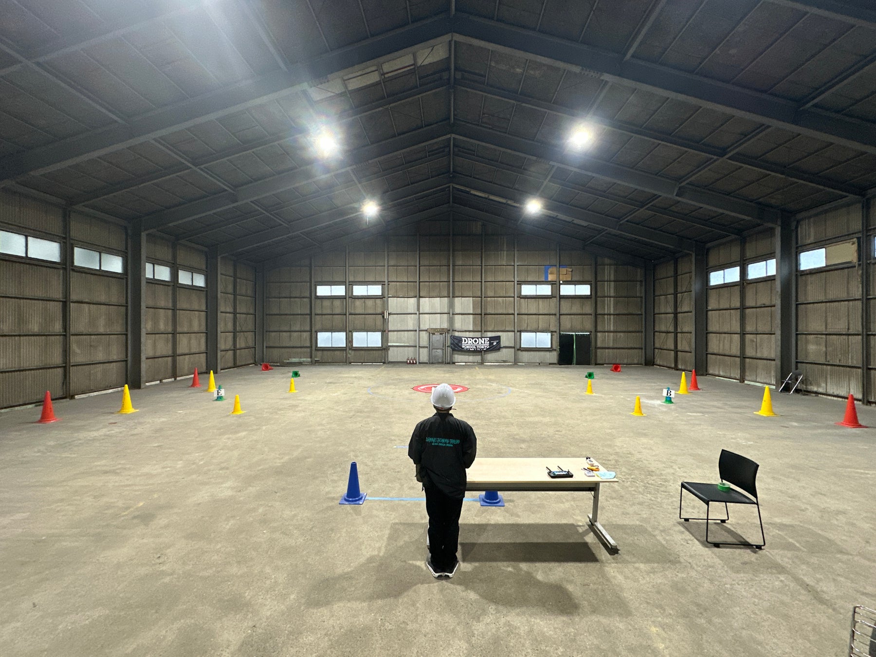 屋上の一部と敷地内広場をドローンの離発着場として利用し、敷地内の一部立ち入り禁止処置及び通行規制を行い、安全を確保した上で飛行を実施。