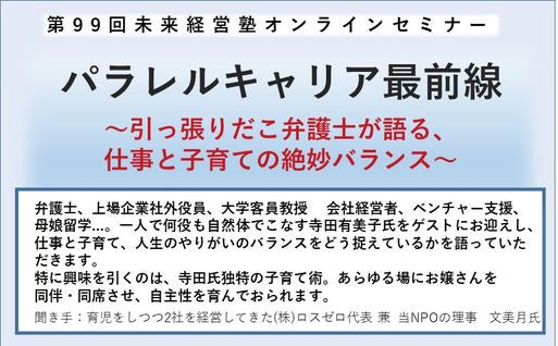 ■テーマ『パラレルキャリア最前線~引っ張りだこ弁護士が語る、仕事と子育ての絶妙バランス~』