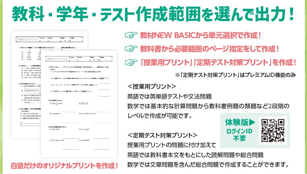 New Basic(英語・数学)/準拠版テキストに対応したプリント作成システムです。