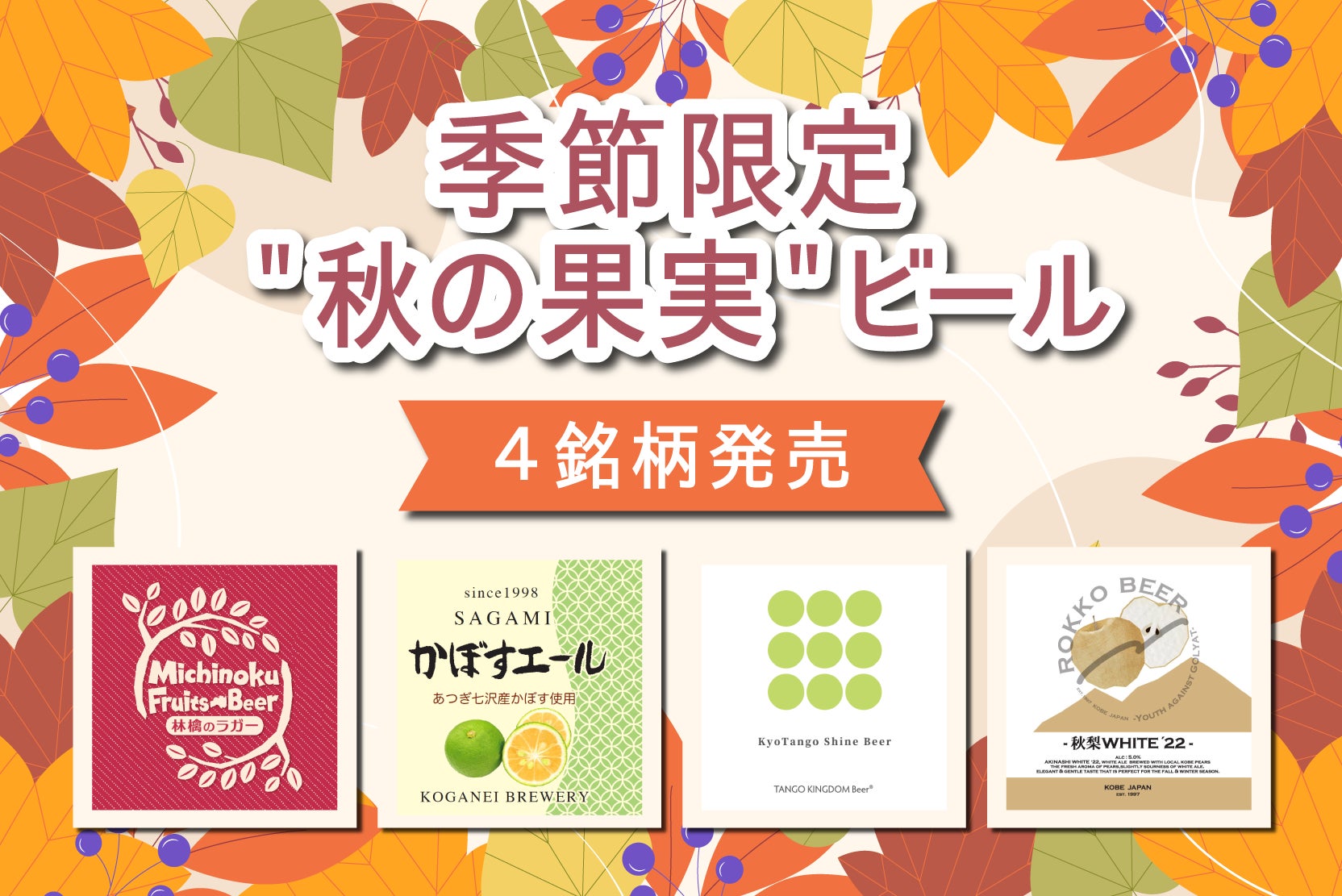 日本全国100銘柄以上のクラフトビールを楽しめるDREAMBEER 季節限定"秋の果実"ビール4銘柄を発売!~季節限定フルーツビールで秋の味覚を楽しもう~