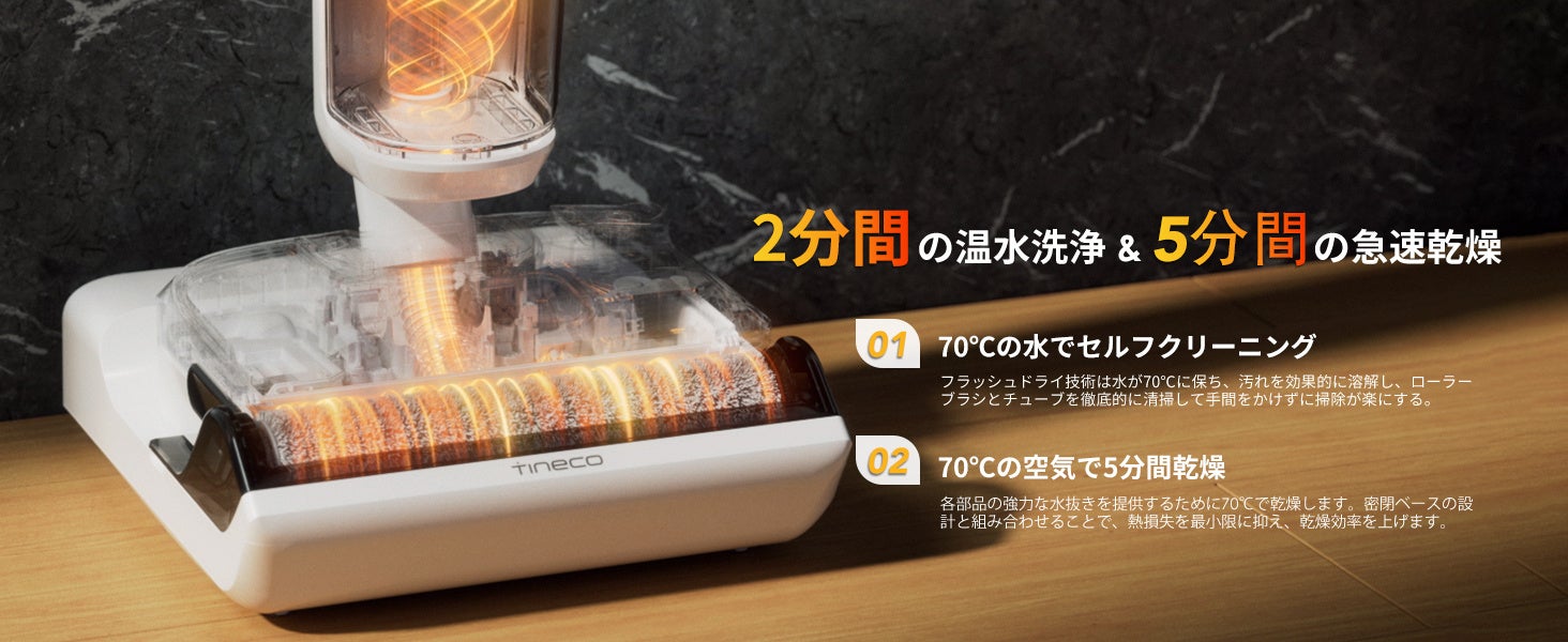 ※4 70℃高温乾燥:Tineco研究所でのテストに基づく。実際のパフォーマンスは異なる場合があります。