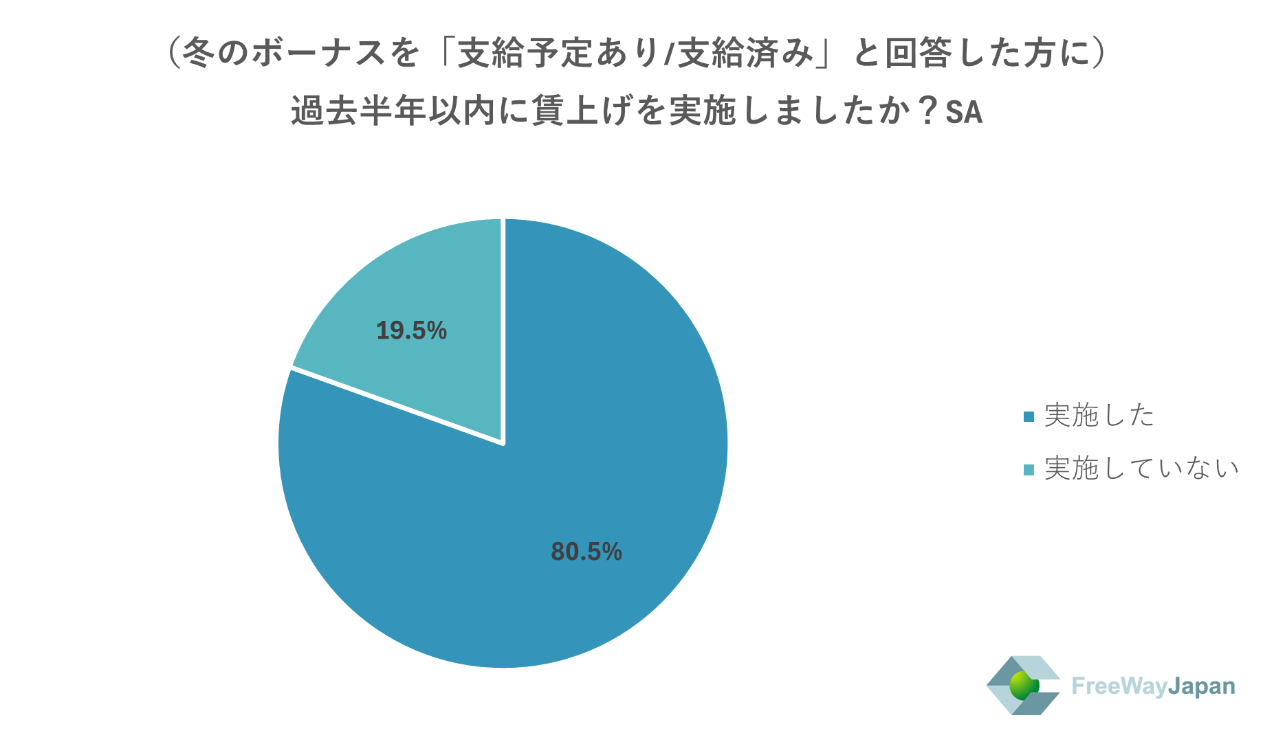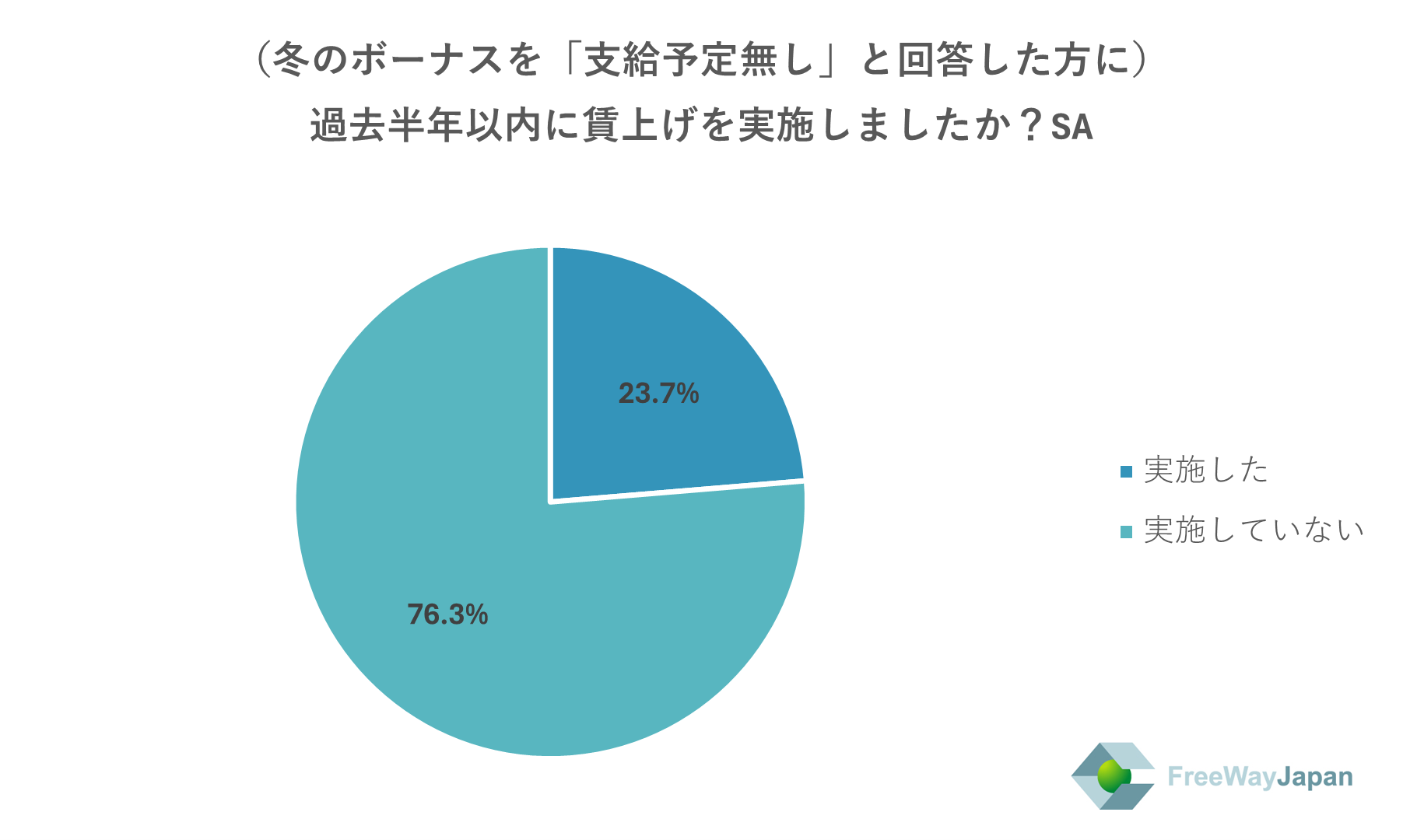 過去半年以内に賃上げを「実施した」43.8% 冬のボーナス「支給あり」回答者は80.5%が実施、「支給なし」回答者は23.7%にとどまる