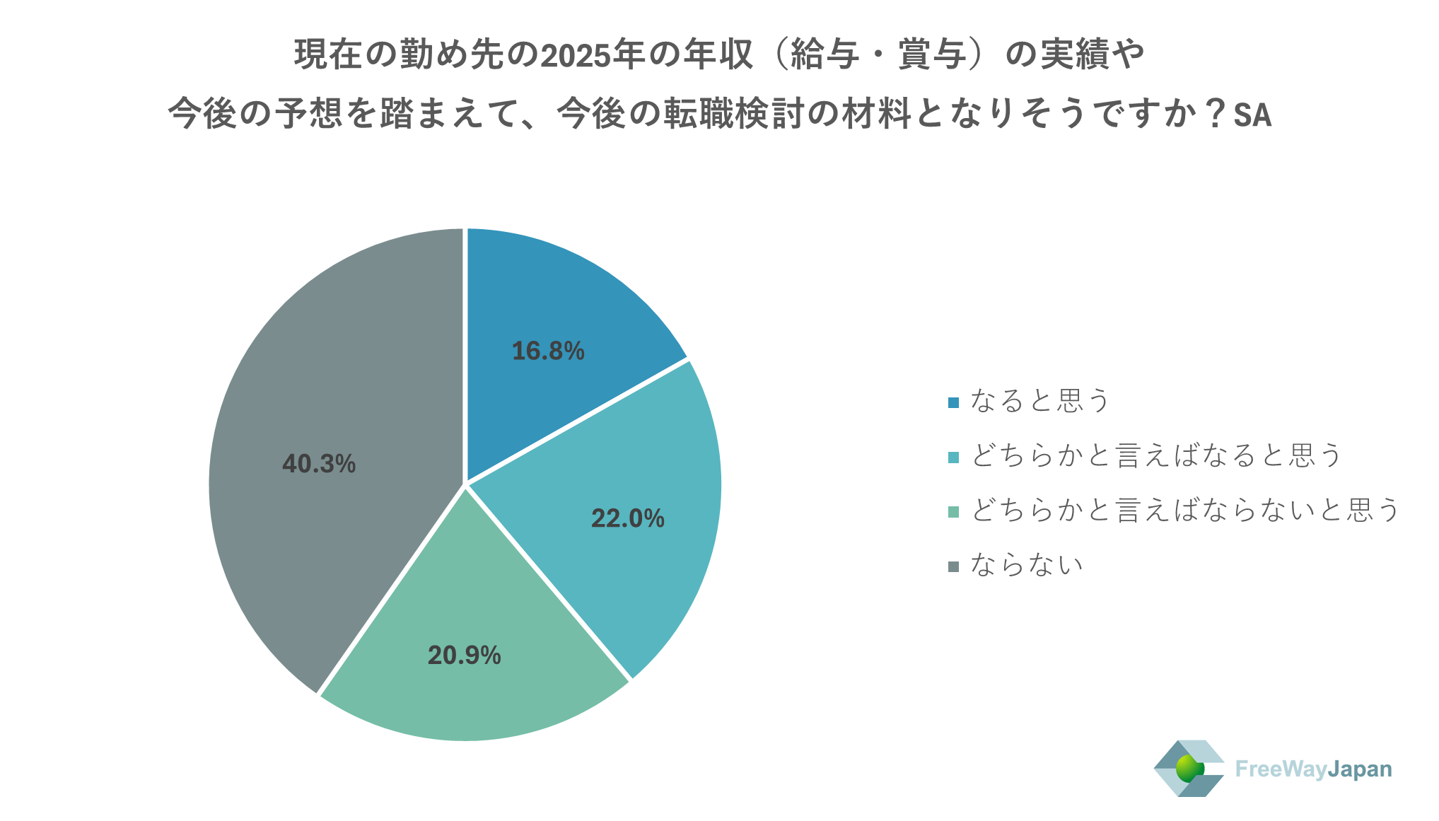 Q21. 現在の勤め先の2025年の年収(給与・賞与)の実績や今後の予想を踏まえて、今後の転職検討の材料となりそうですか?SA