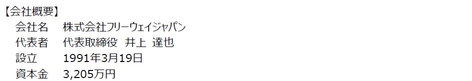 本リリース内容の転載にあたりましては、出典として「フリーウェイジャパン調べ」とご記載いただけますようお願い申し上げます。
