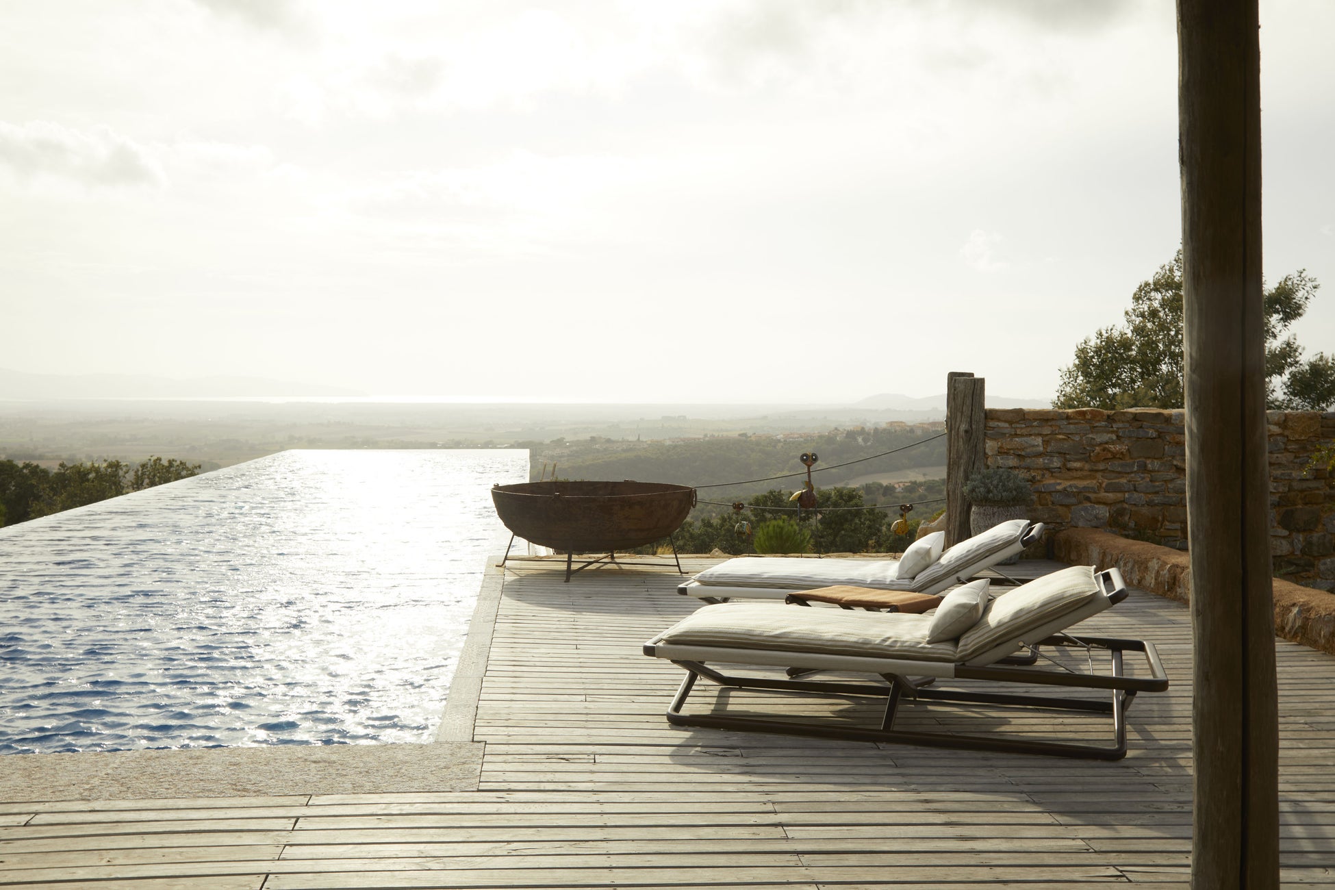 屋外用の新製品では、質感と構造が「共通の糸」であり、すべてトレヴィラ®を高い割合で使用しています。トレヴィラ®は過去の製造工程で出た端材を回収し、最高品質の糸に変える特別なプロセスによってリサイクルされたものです。その結果、風雨に耐え、環境に配慮した完全難燃性の生地が誕生しました。18色からお選びいただけるエズはヘリンボーン柄で、無地とさまざまなコントラストのツートンカラーがあります。セント・ラファエルは、12色の新しい無地の屋外用ファブリックで、安定性と耐久性に優れています。無地とストライプのル・ラヴァンドゥーとラ・ポンシュは、意図的に不規則な表面をもつテクスチャー生地です。