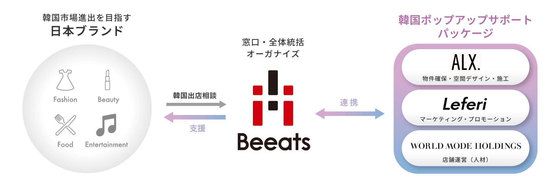 ビーツはこれまで、日本市場進出を目指す韓国ブランドのポップアップストア展開を数多くサポートしてまいりました。その過程で、日本ブランドの韓国進出に関する具体的な相談が増加したことを受け、実効性の高い支援体制の構築を進めております。