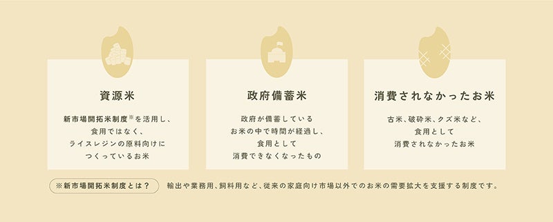 また、ライスレジン用の米づくりは休耕田や耕作放棄地の再利用にもつながり、土壌改良を経て、いずれは食用米の生産に切り替えることも可能です。