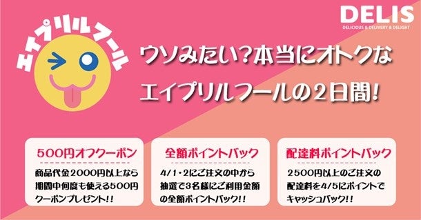 デリズWEBサイト(https://www.delis.co.jp/)でご利用可能なエイプリルフール限定クーポンをご用意致しました!