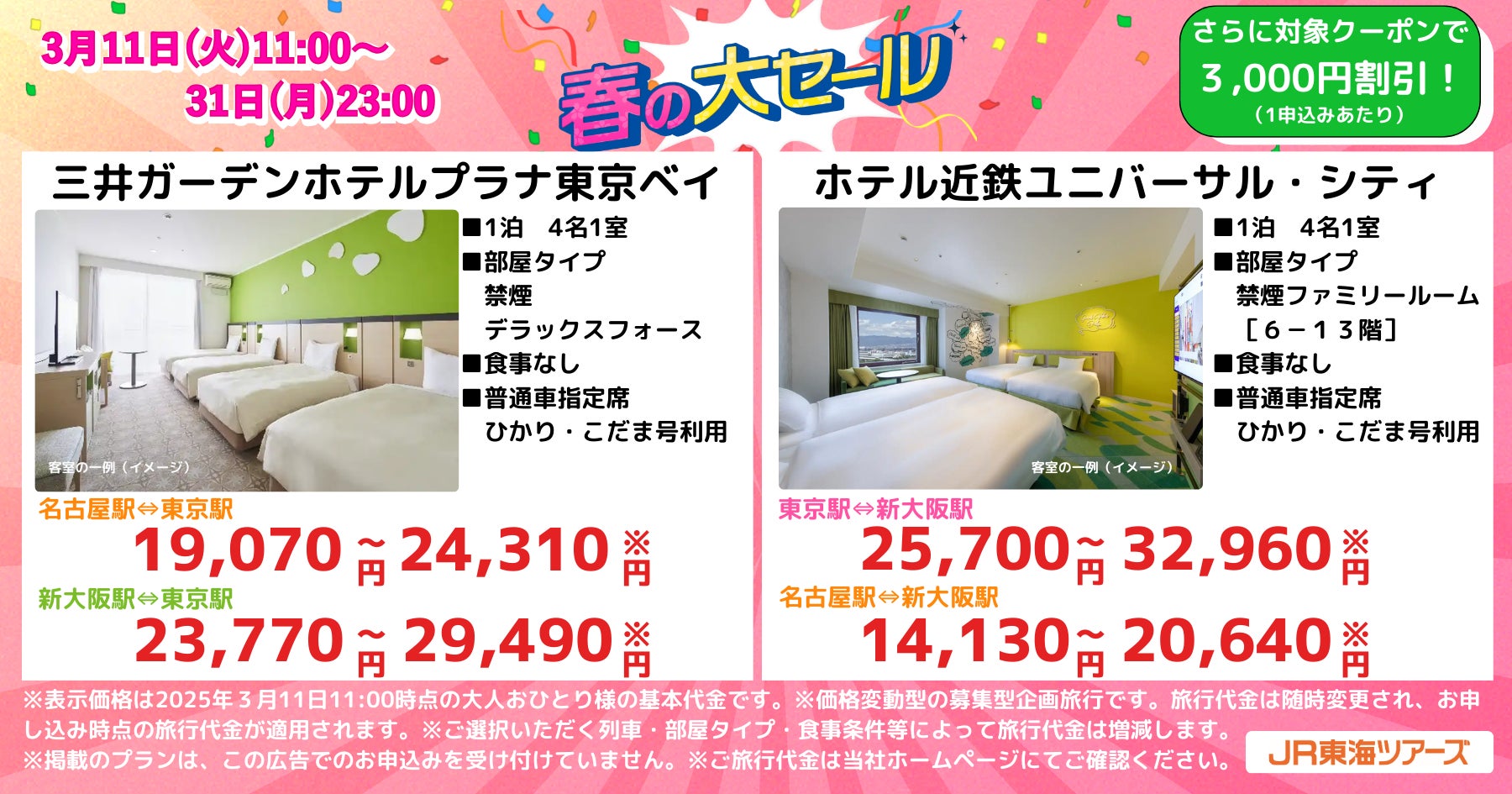 本日スタート【EX旅パック 春の大セール】驚きの価格で登場!初夏の新幹線旅行の予約は今がチャンス!さらに限定割引クーポンで最大3,000円オフ!