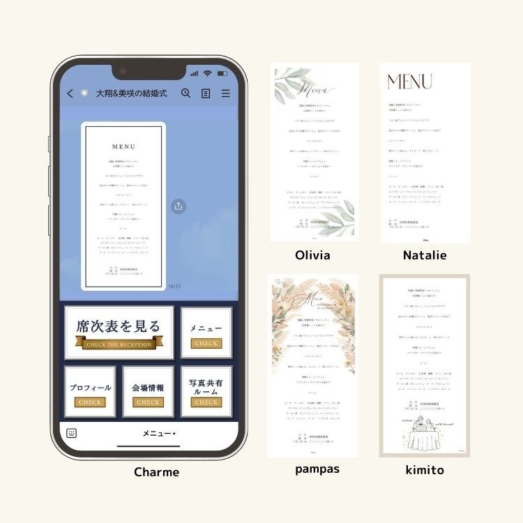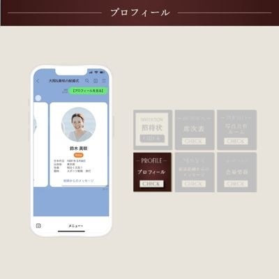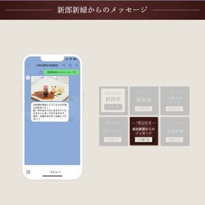 招待状を含む、6つのボタンで結婚式に関する情報をLINEで分かりやすくご案内できます。